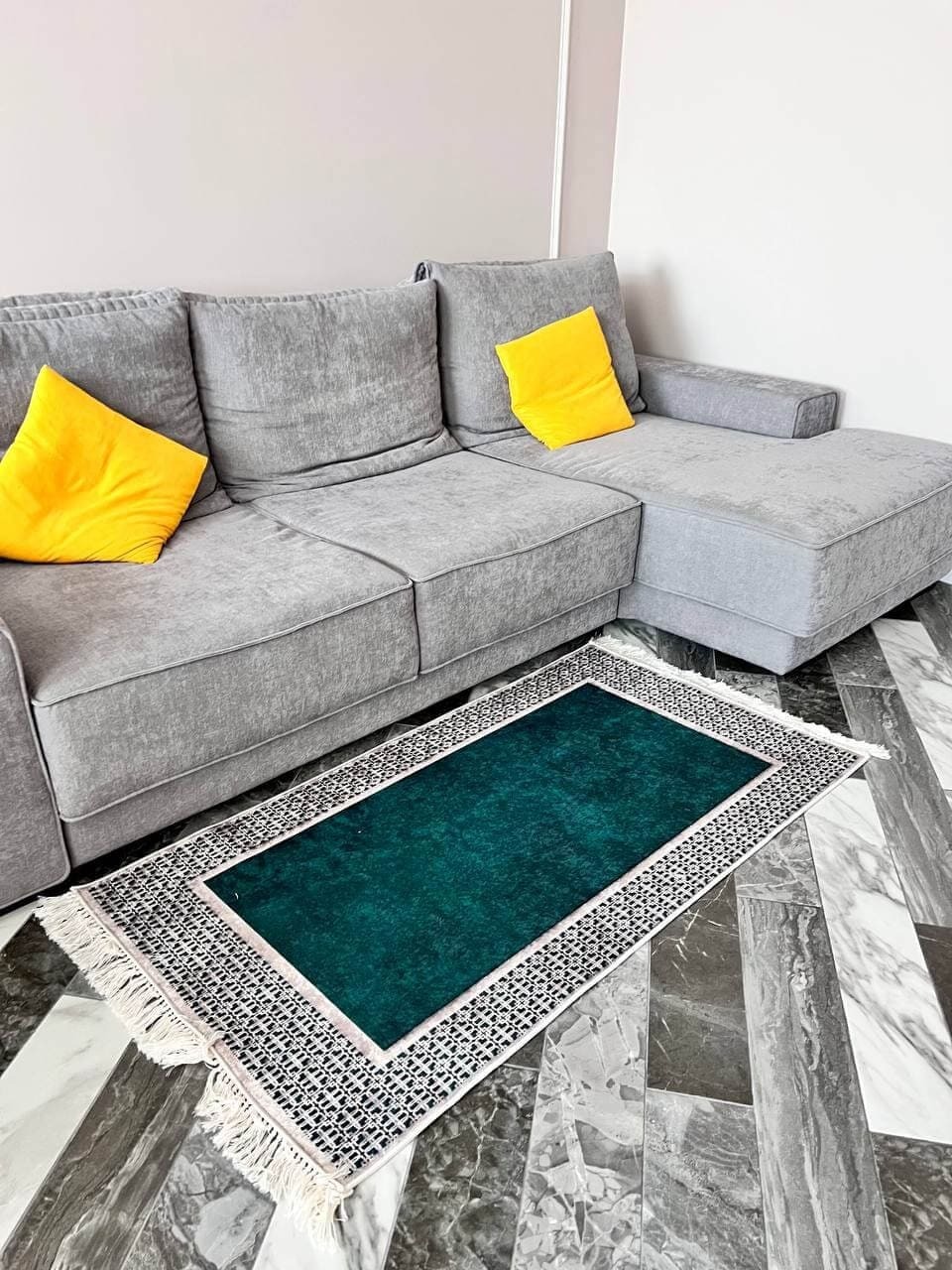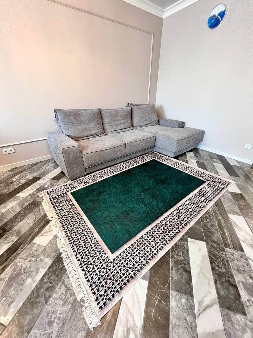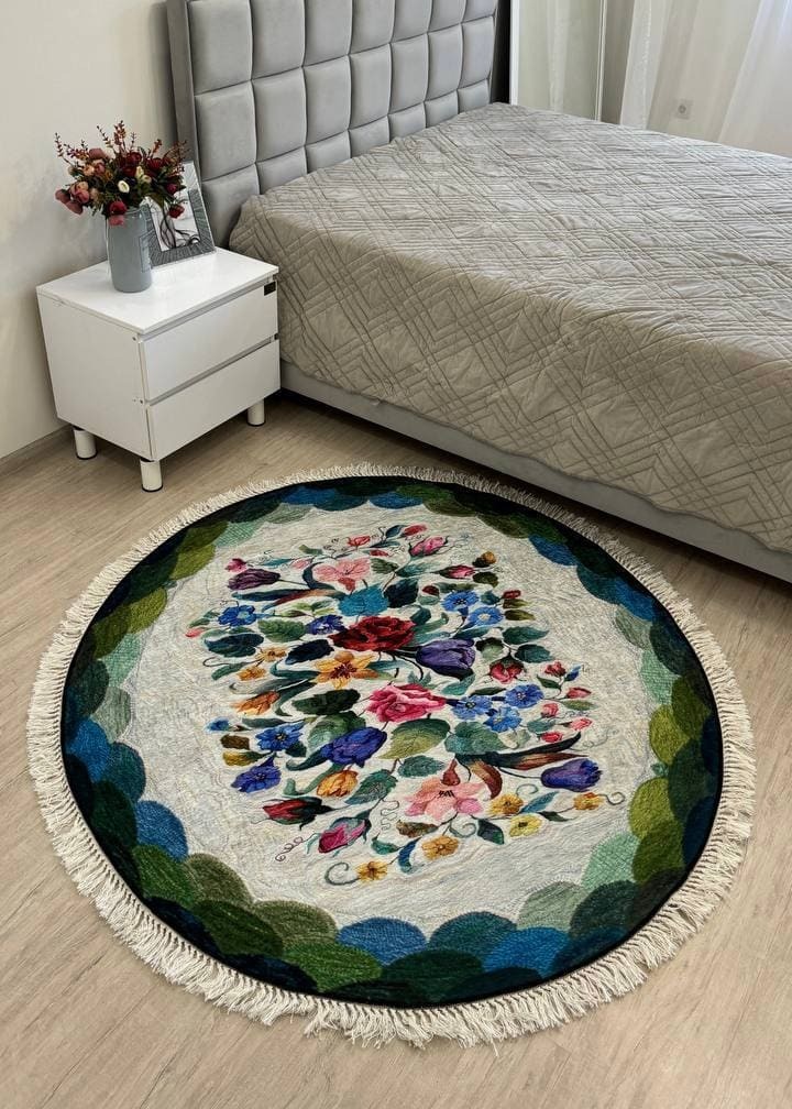 Килим, який не ковзає на підлозі, має особливий смарагдовий колір, доступний до замовлення у формі кола та прямокутника