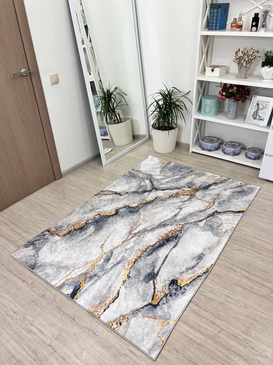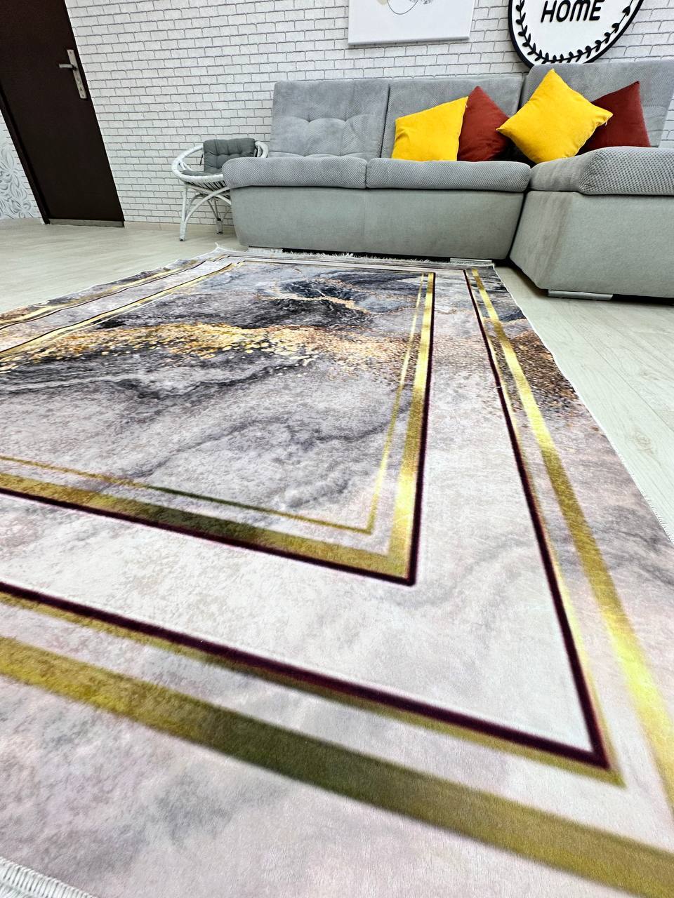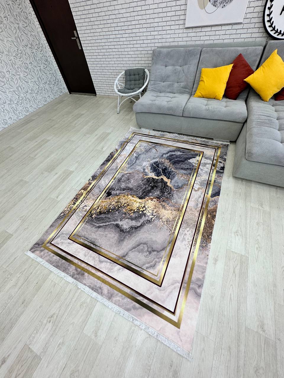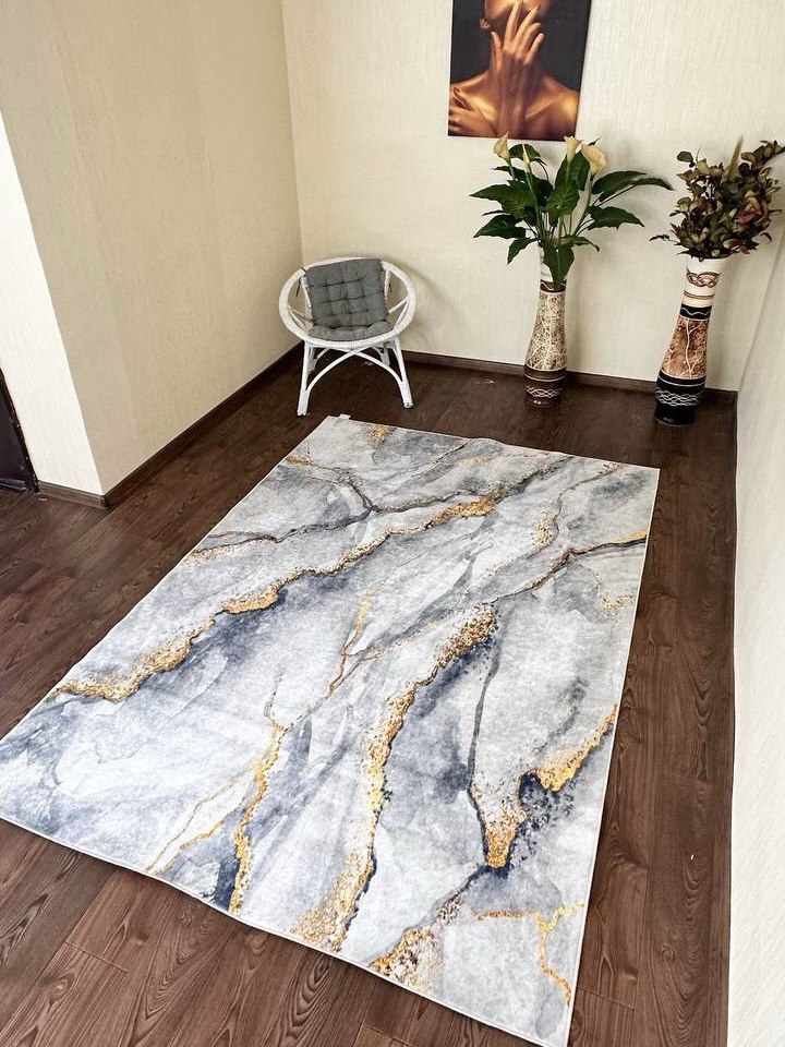 Сучасний килим, виготовлений в Туречинні, стиль мрамор. Не ковзає на підлозі, завдяки прогумованій основі з екошкіри