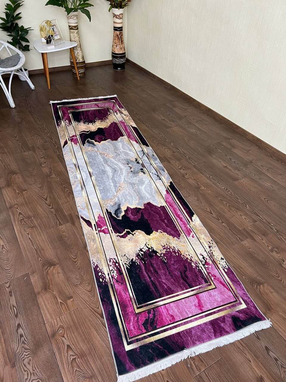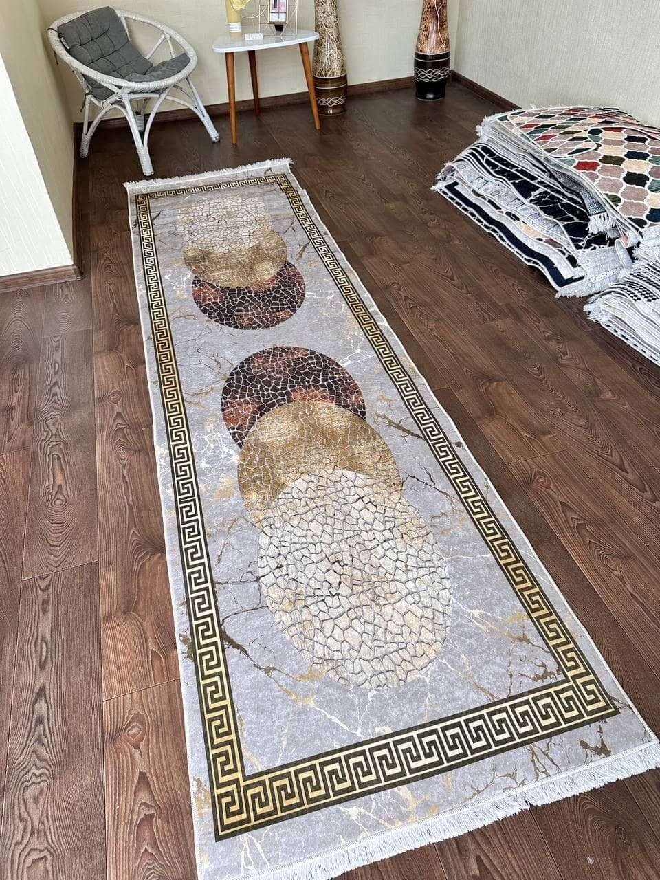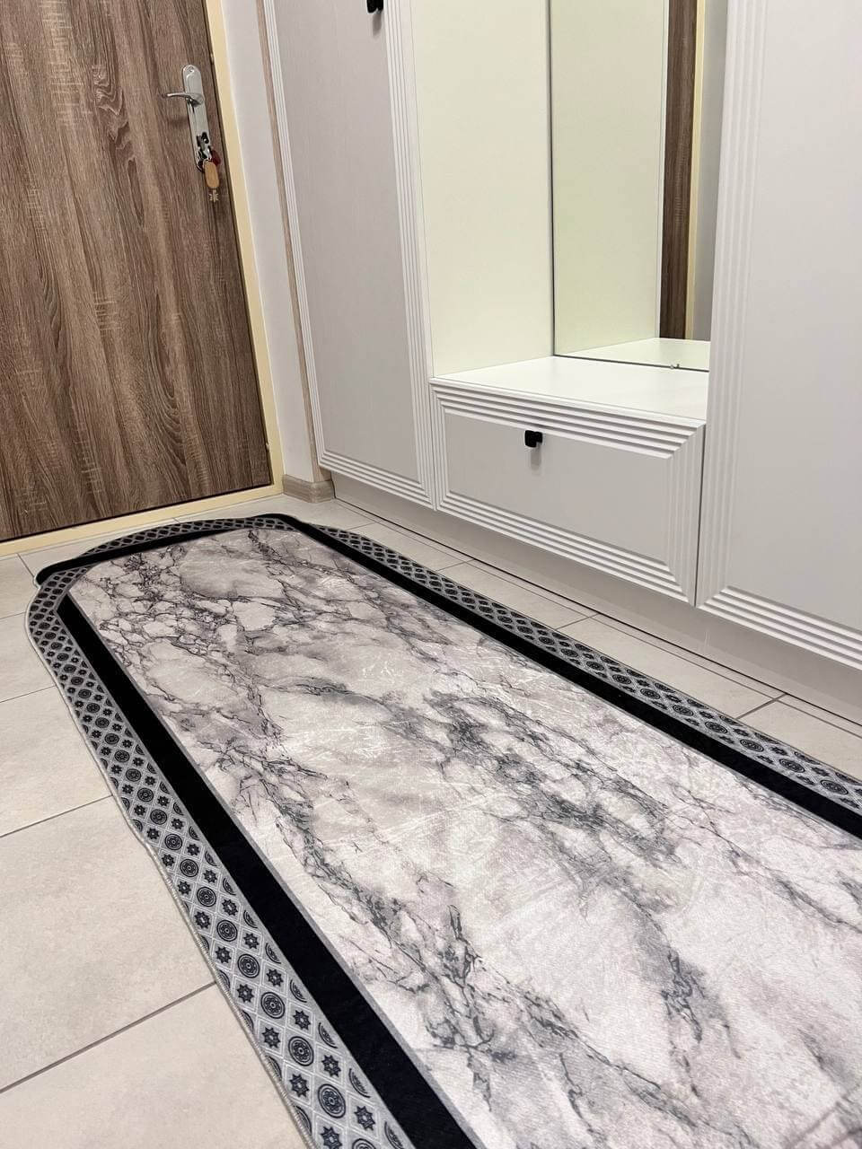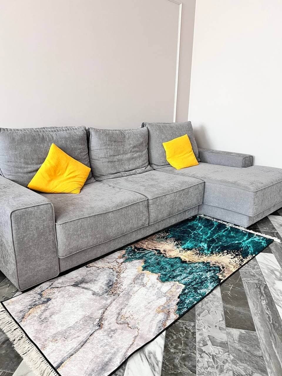 Сучасний килим, виготовлений в Туречинні, стиль мрамор. Не ковзає на підлозі, завдяки прогумованій основі з екошкіри