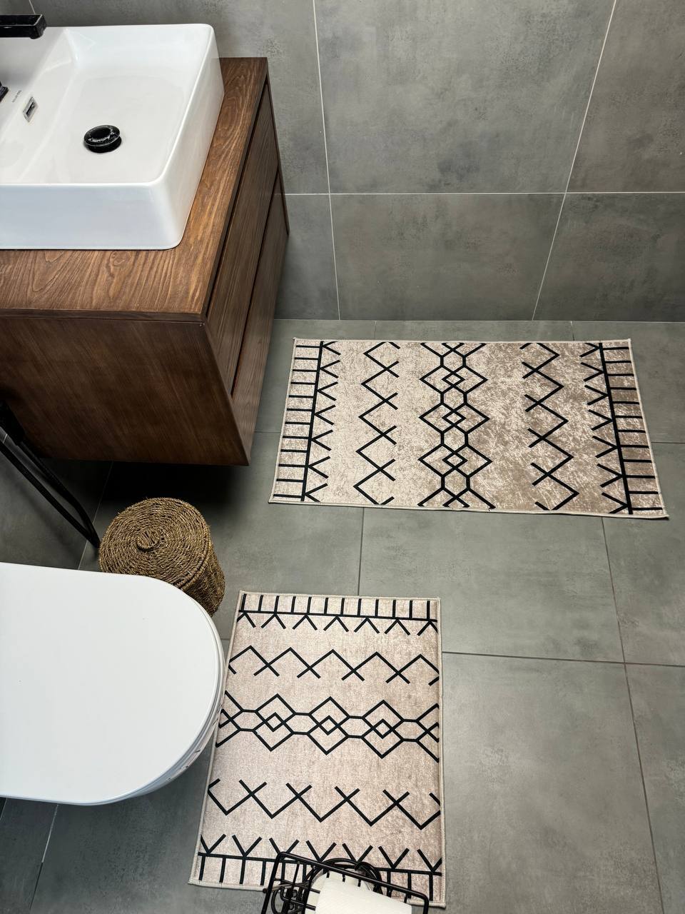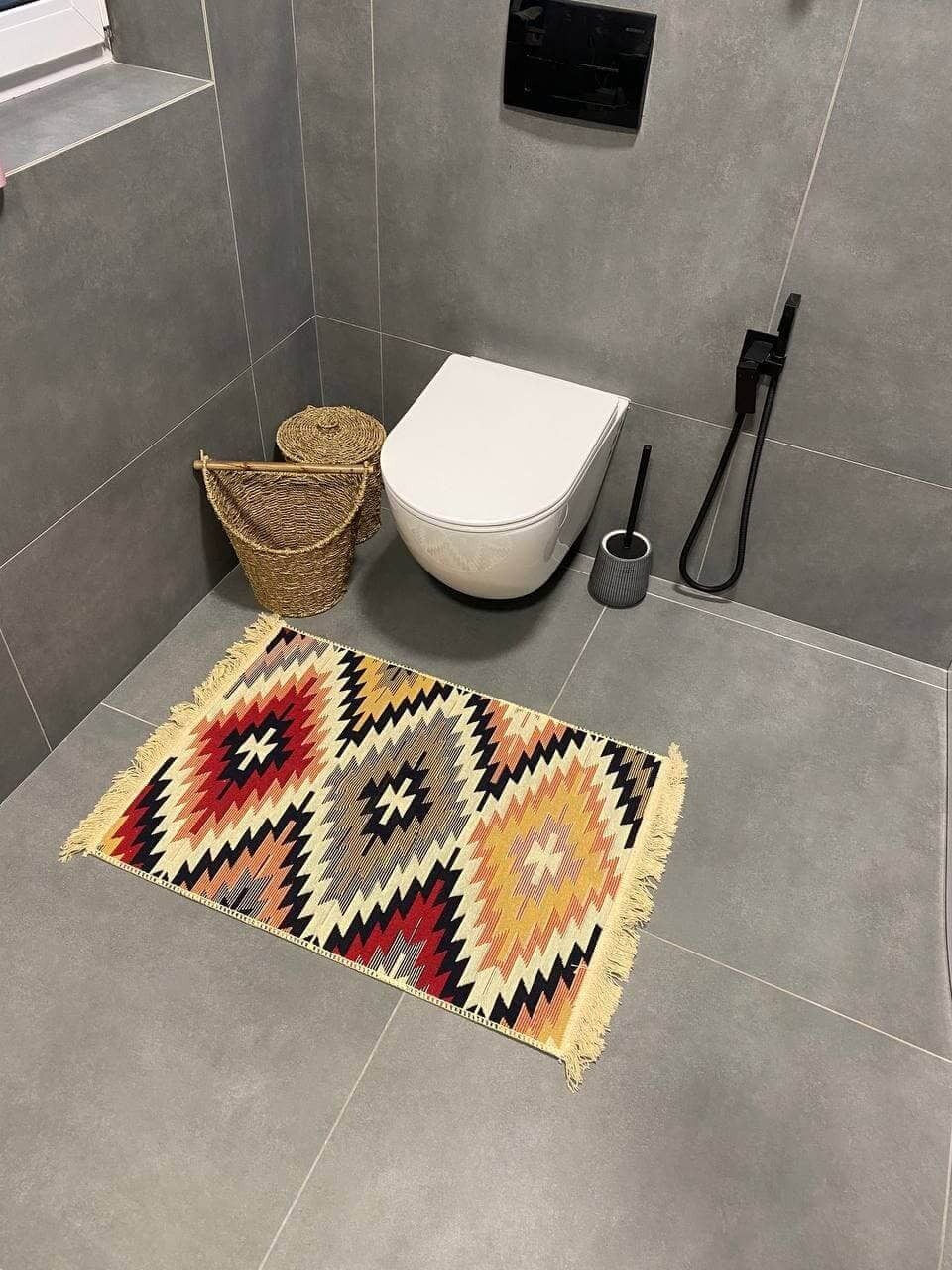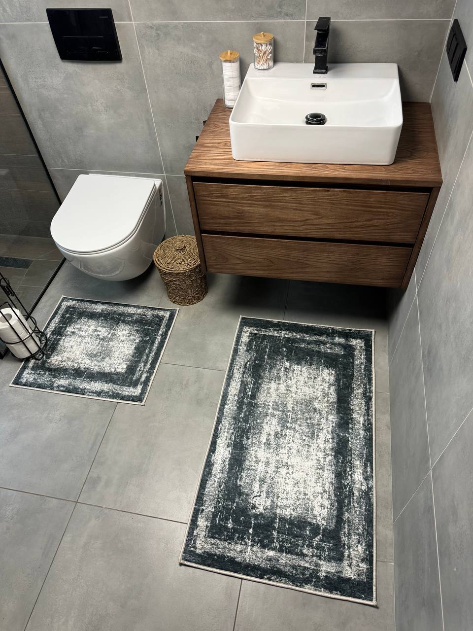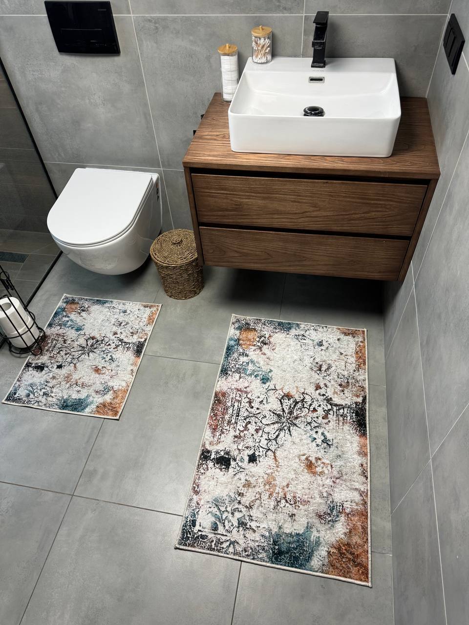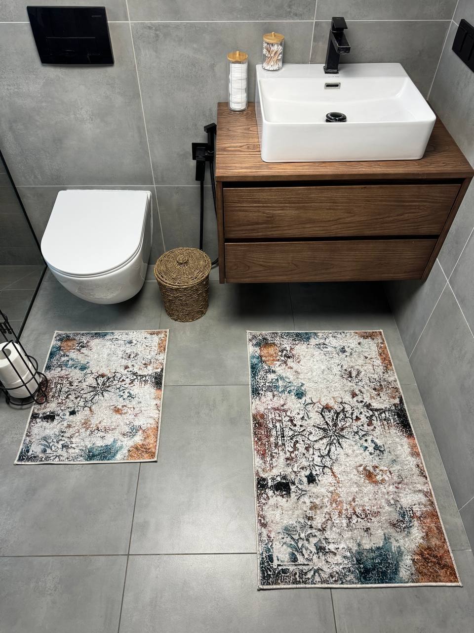 Двосторонній бавовняний килим для ванної кімнати в маленьких розмірах. Ідеальне рішення для такої кімнати, килим стійкий до вологи, не пропускає холод через підлогу та легко можна прати в машинці