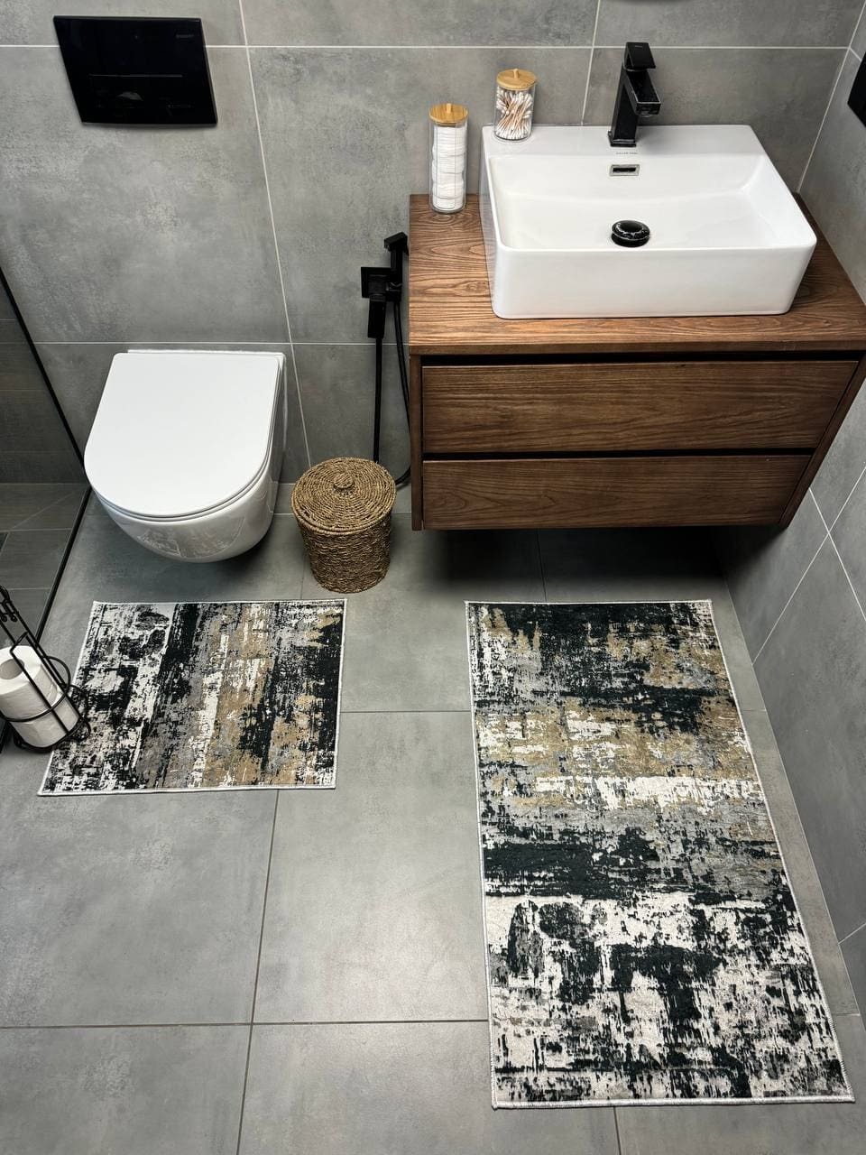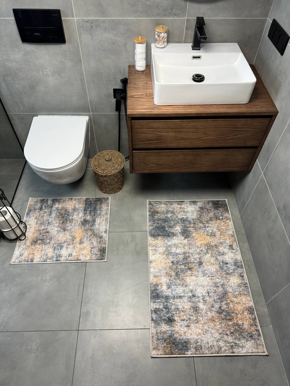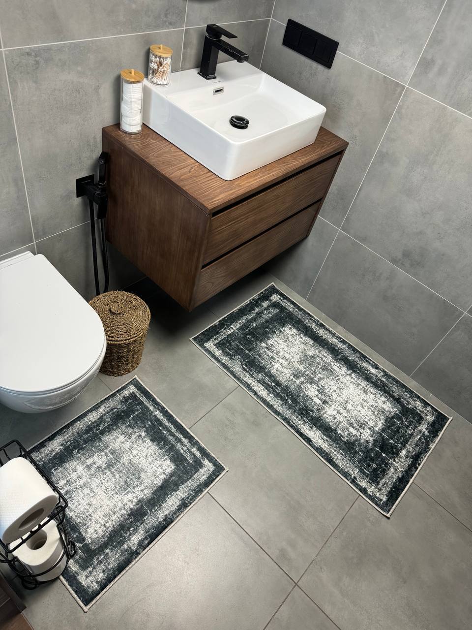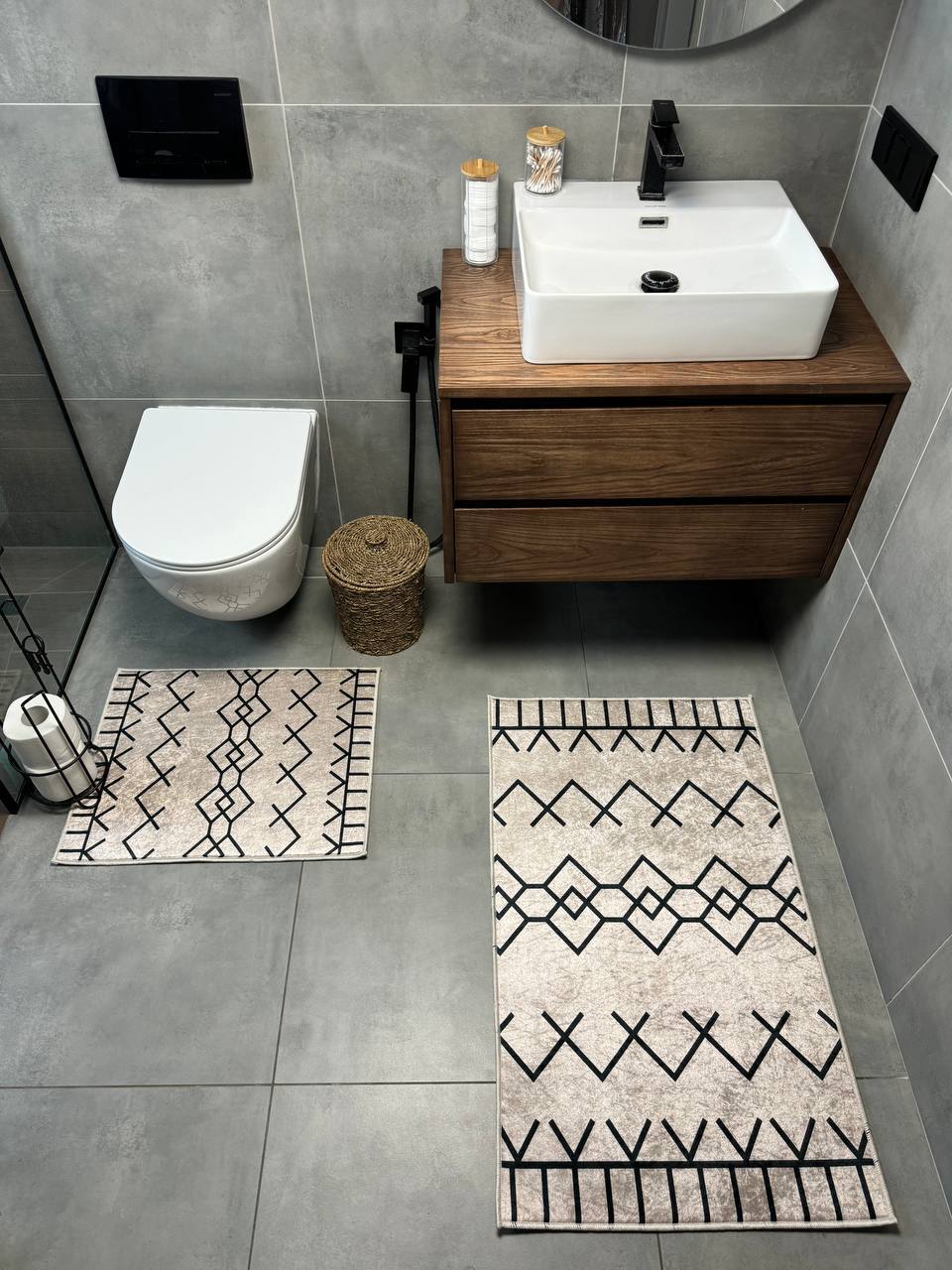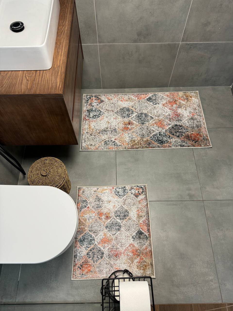 Двосторонній бавовняний килим для ванної кімнати в маленьких розмірах. Ідеальне рішення для такої кімнати, килим стійкий до вологи, не пропускає холод через підлогу та легко можна прати в машинці