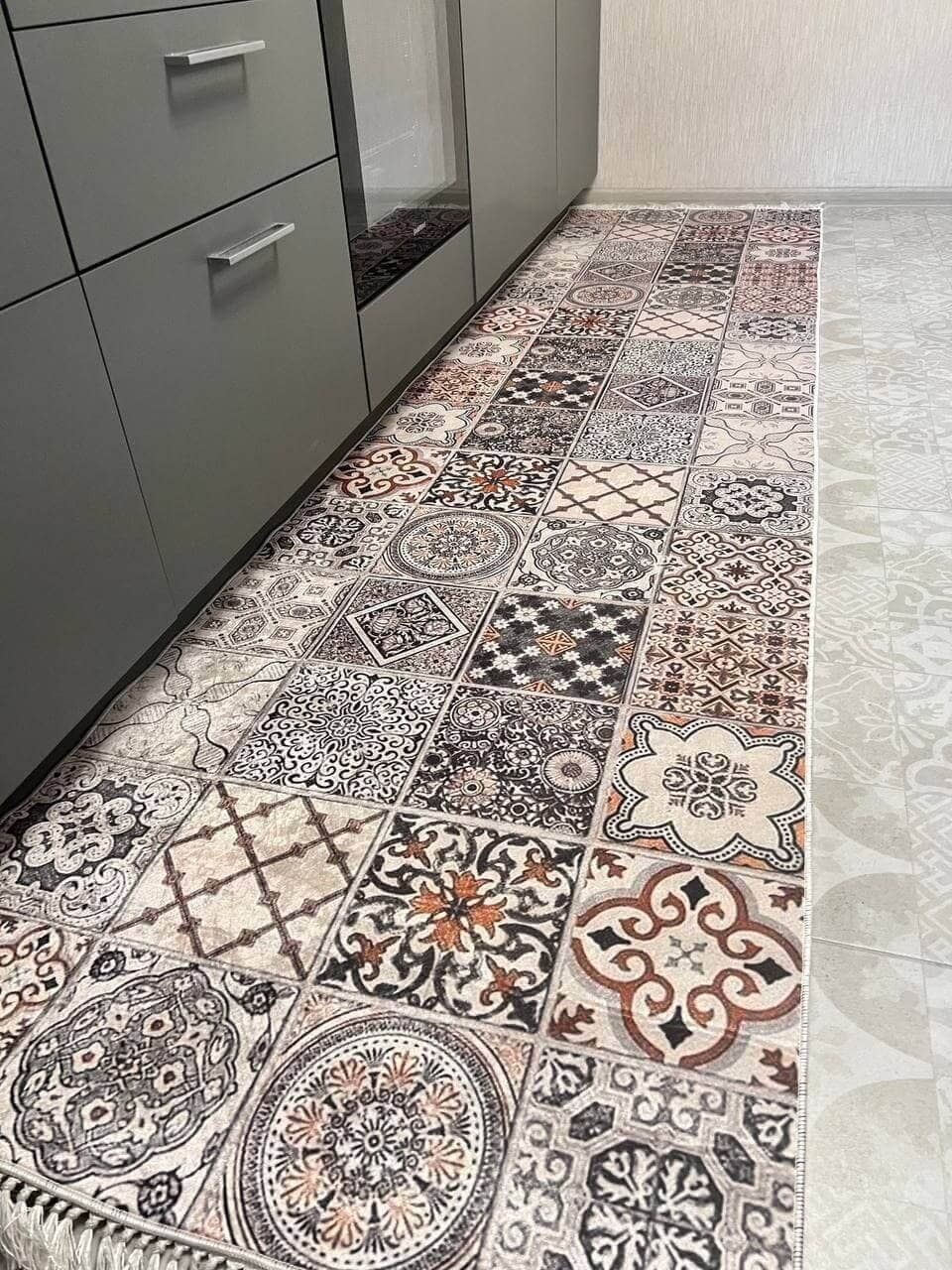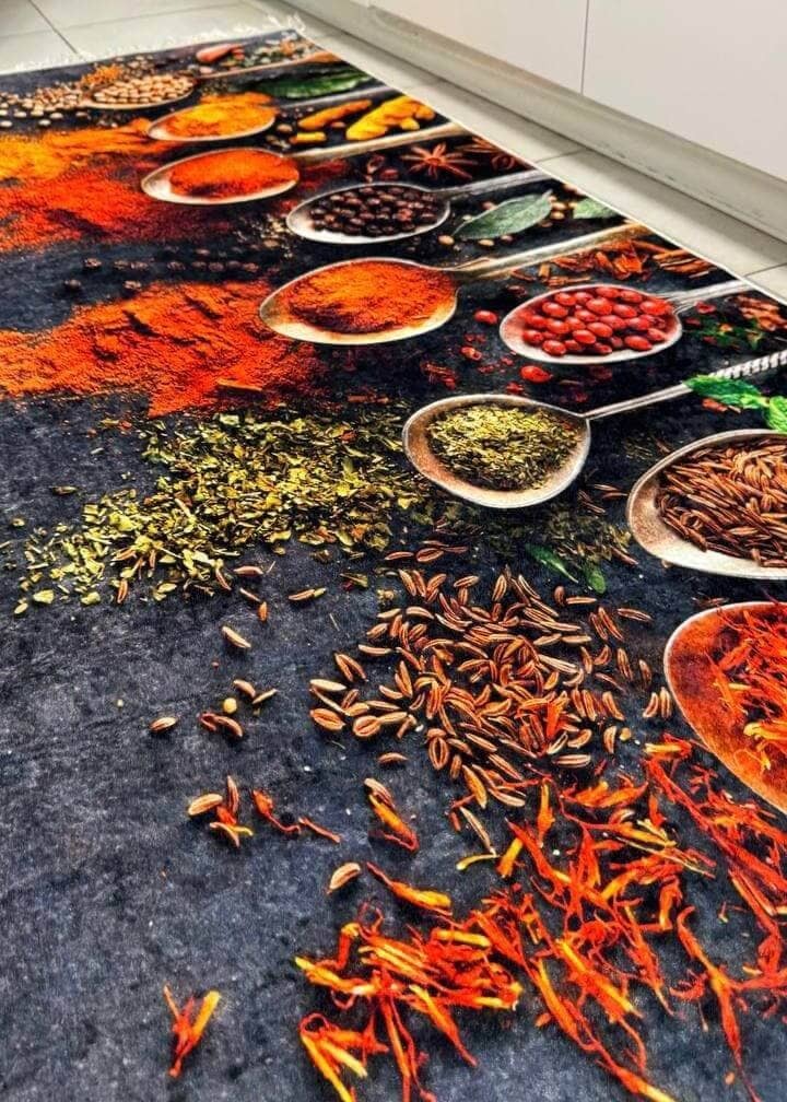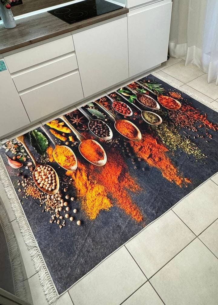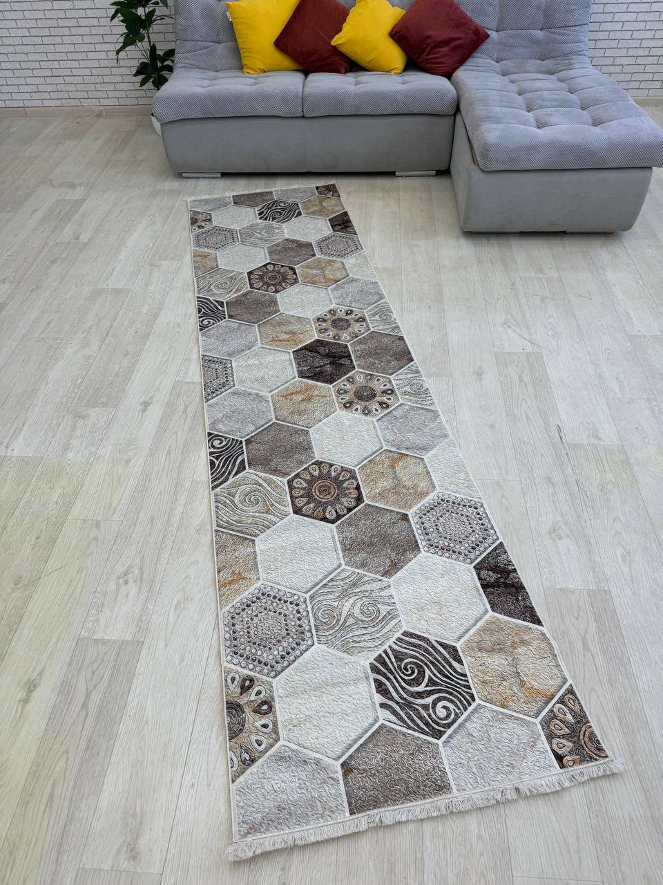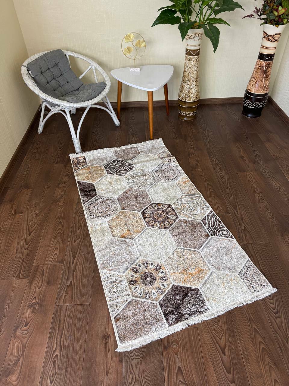 Турецький килим, високої якості незвичної форми. Підходить, як для кухні так і для коридору. Не пропускає холод та безпечний для алергиків, висота килимка 0,5 см. Не ковзають по плитці та ламінату