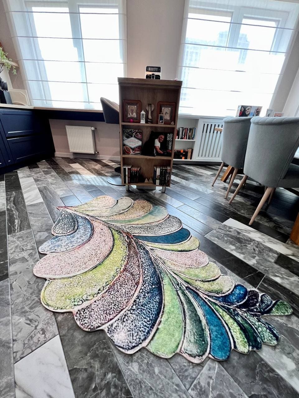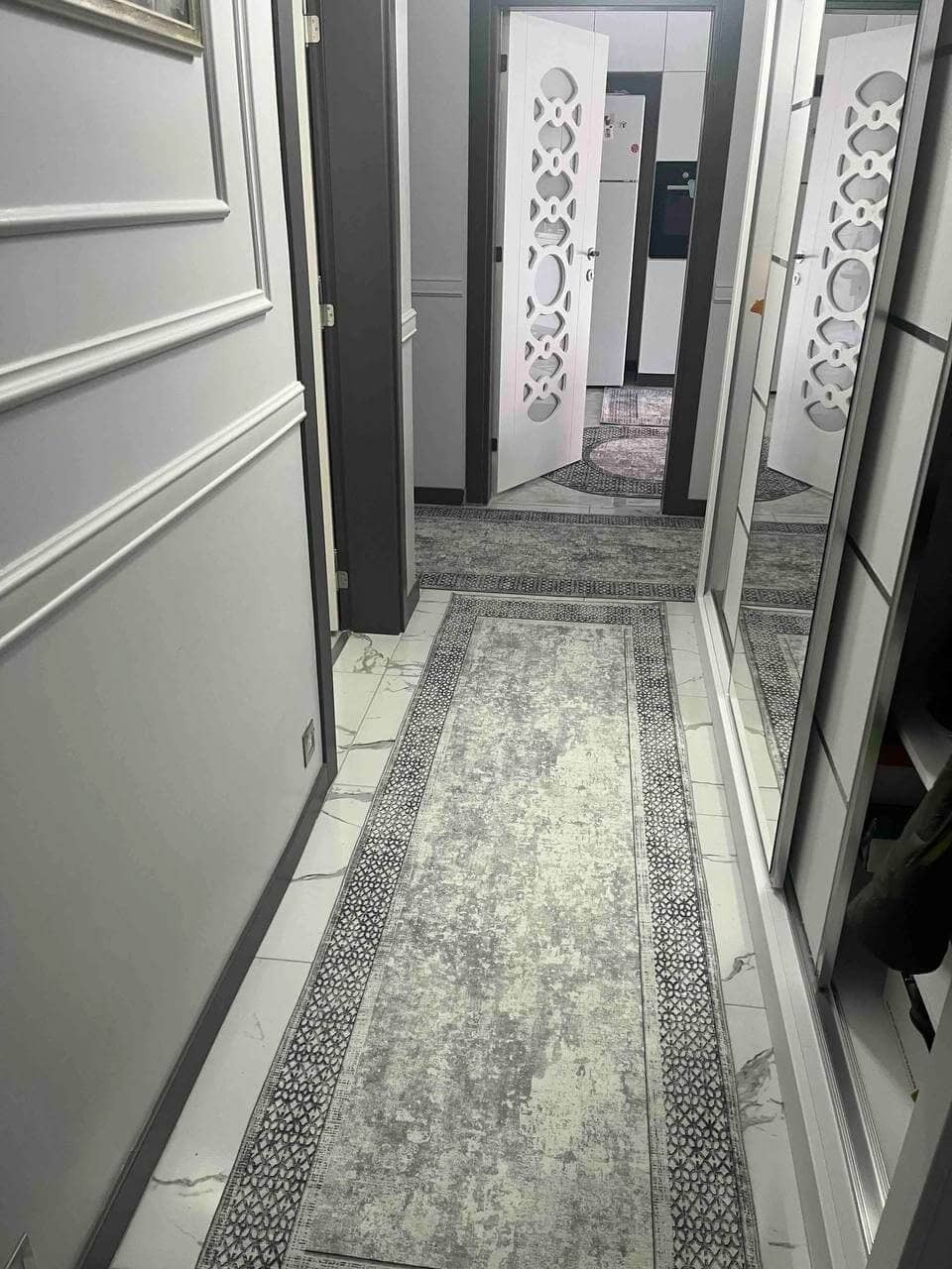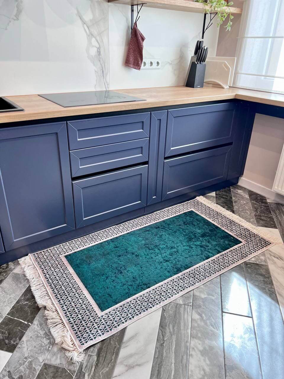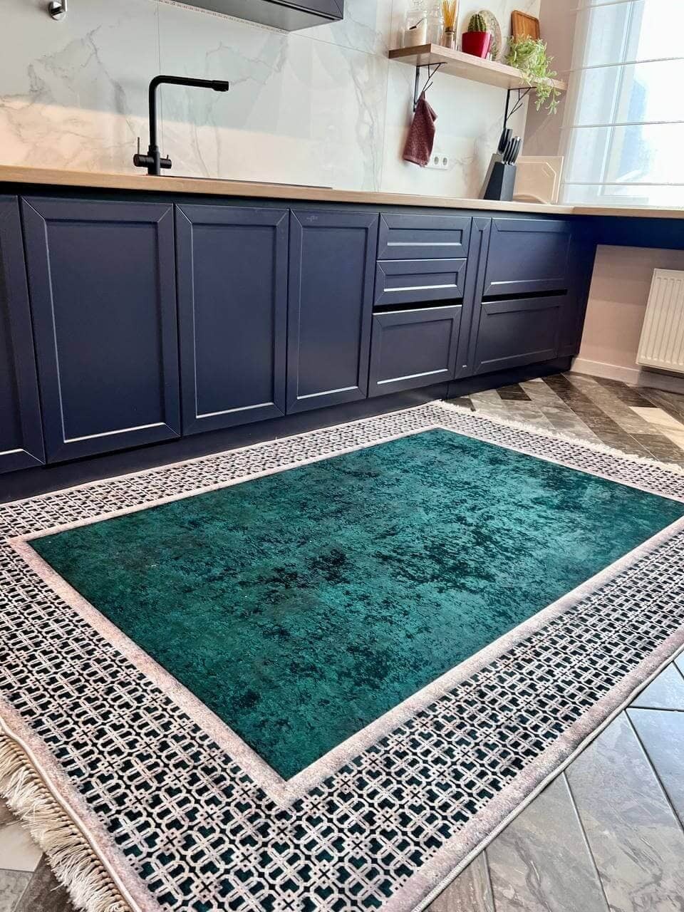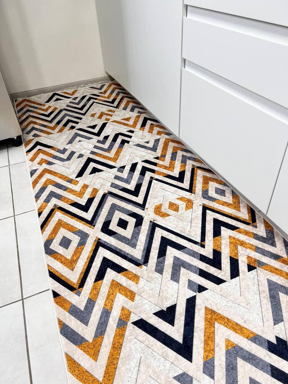 Турецький килим, високої якості незвичної форми. Підходить, як для кухні так і для коридору. Не пропускає холод та безпечний для алергиків, висота килимка 0,5 см. Не ковзають по плитці та ламінату