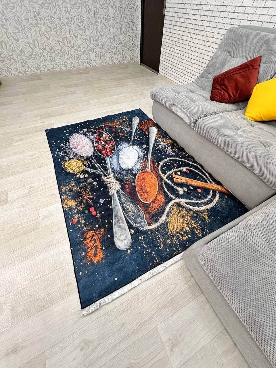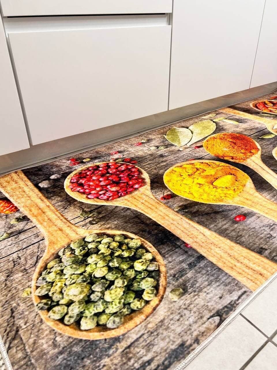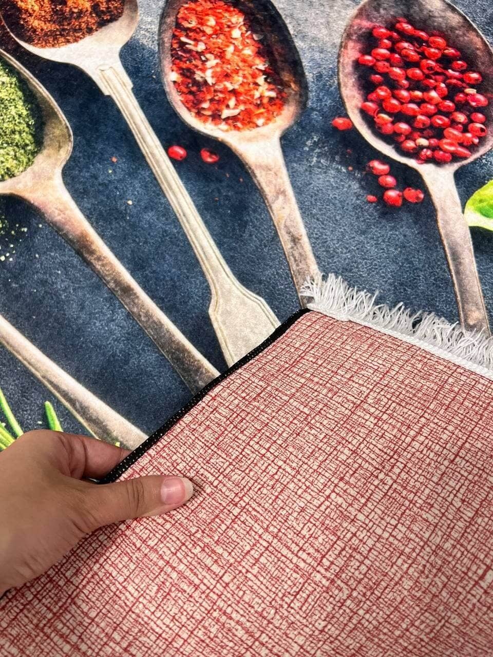 Килим на прогумованій основі, що дуже важливо для кухні. Також його можна прати в машинці за делікатного прання. Не пропускає холод, завдяки гумовій основі
