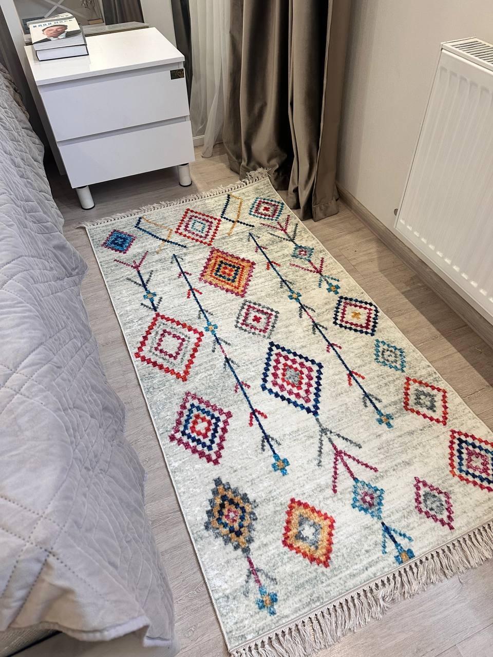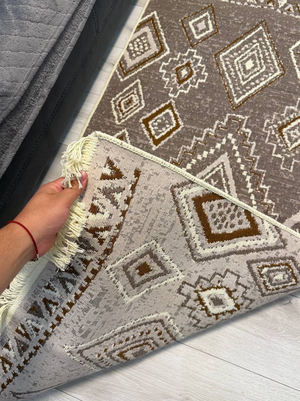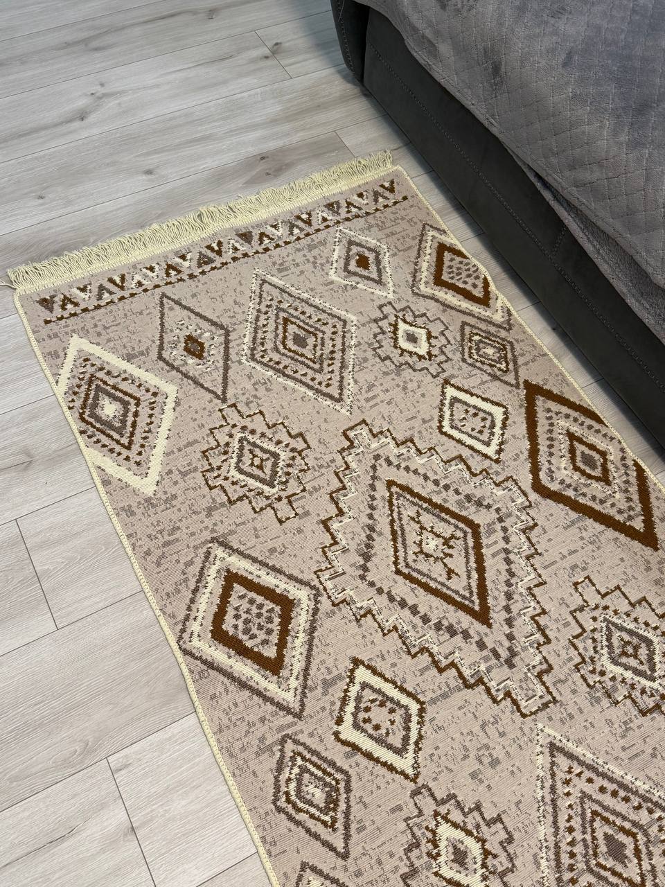 Практичний та зручний килим. Виробництво: Туречинна, не буде ковзати на підлозі завдяки прогумованій основі з іншої сторони. Чіткий візерунок, який виглядає в житті ідентично, як на фото