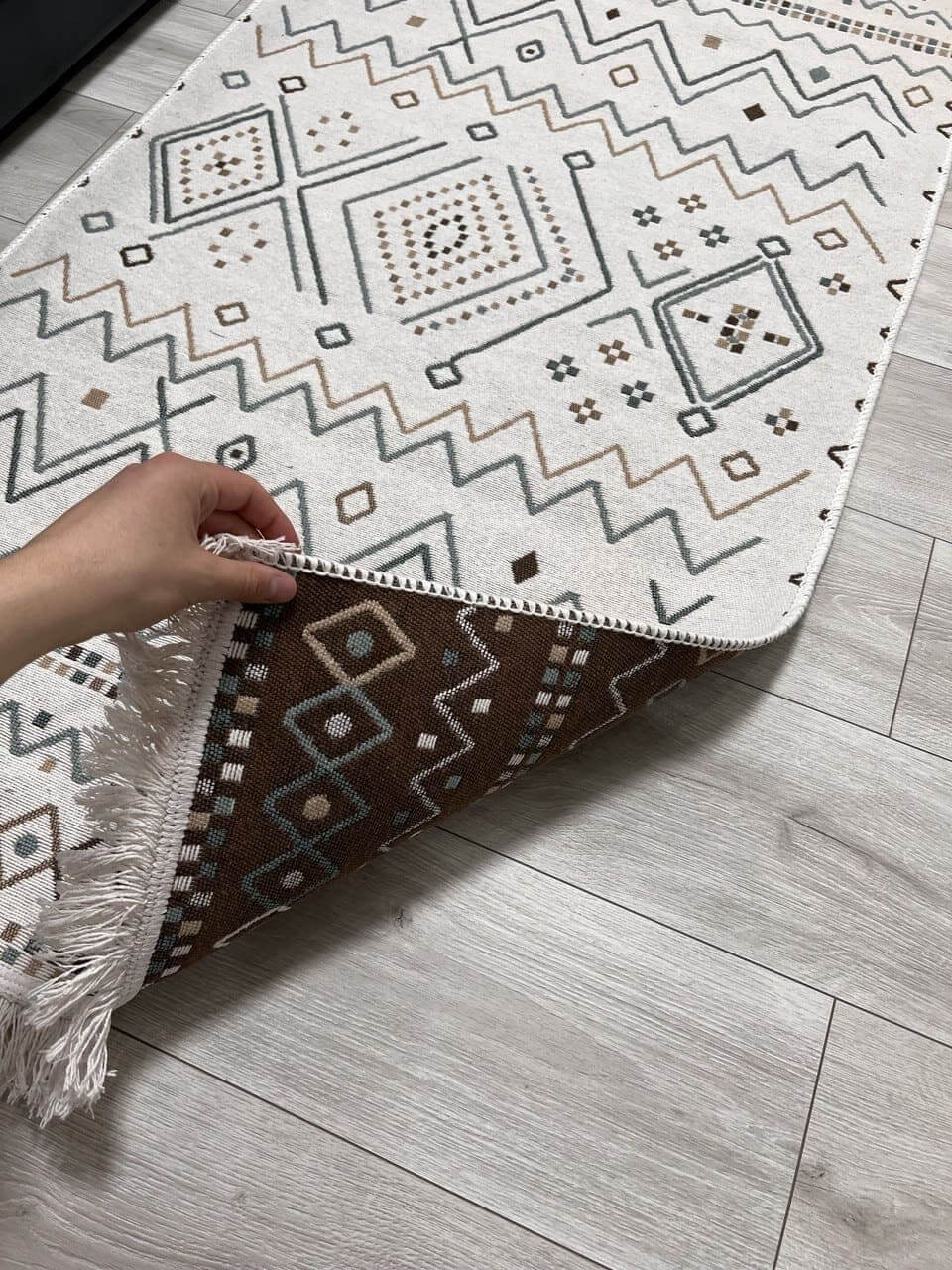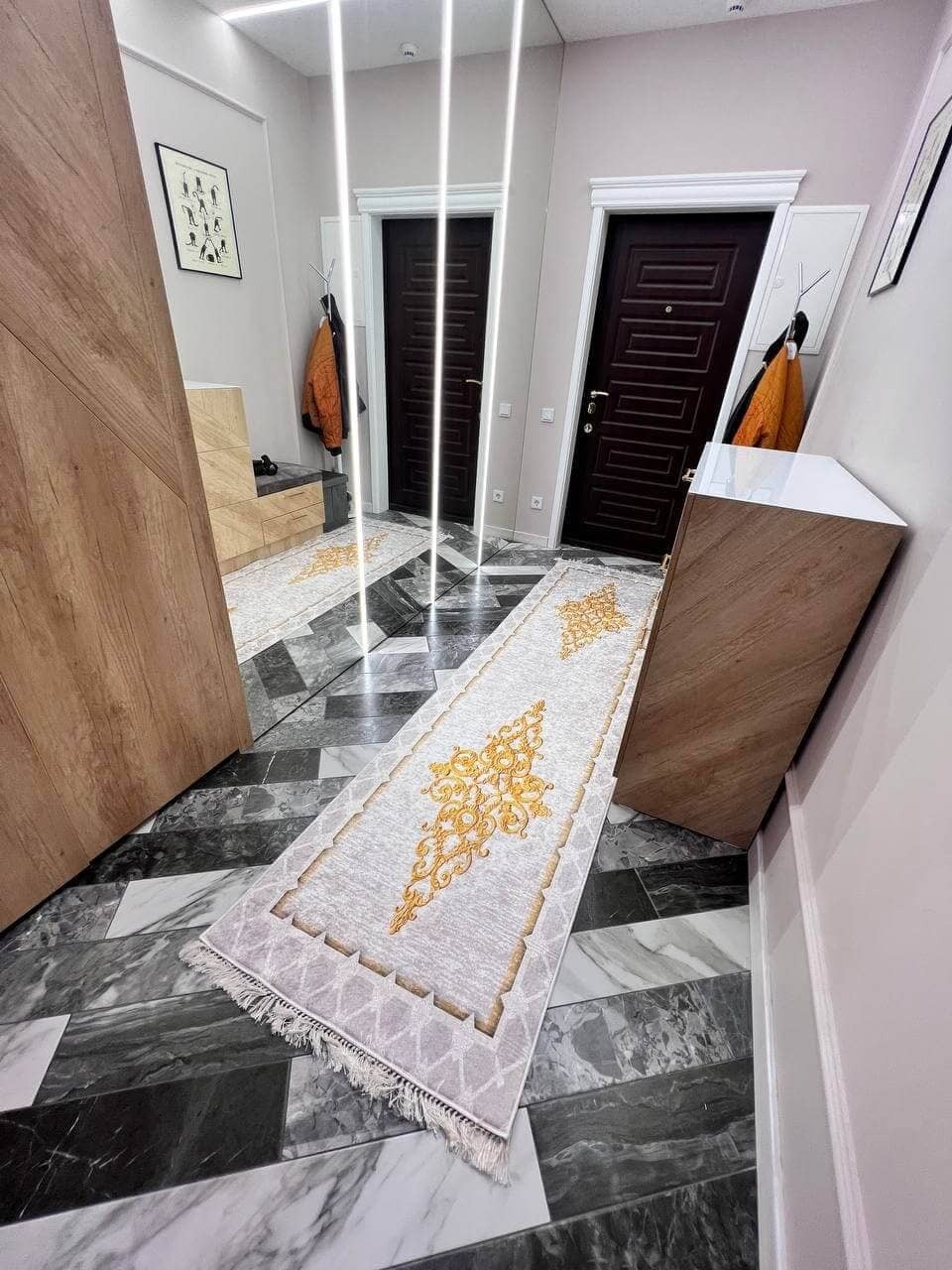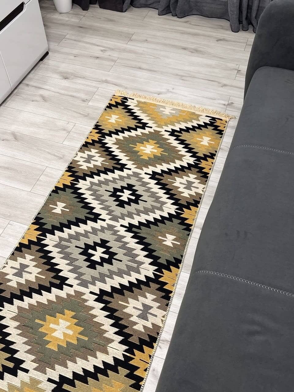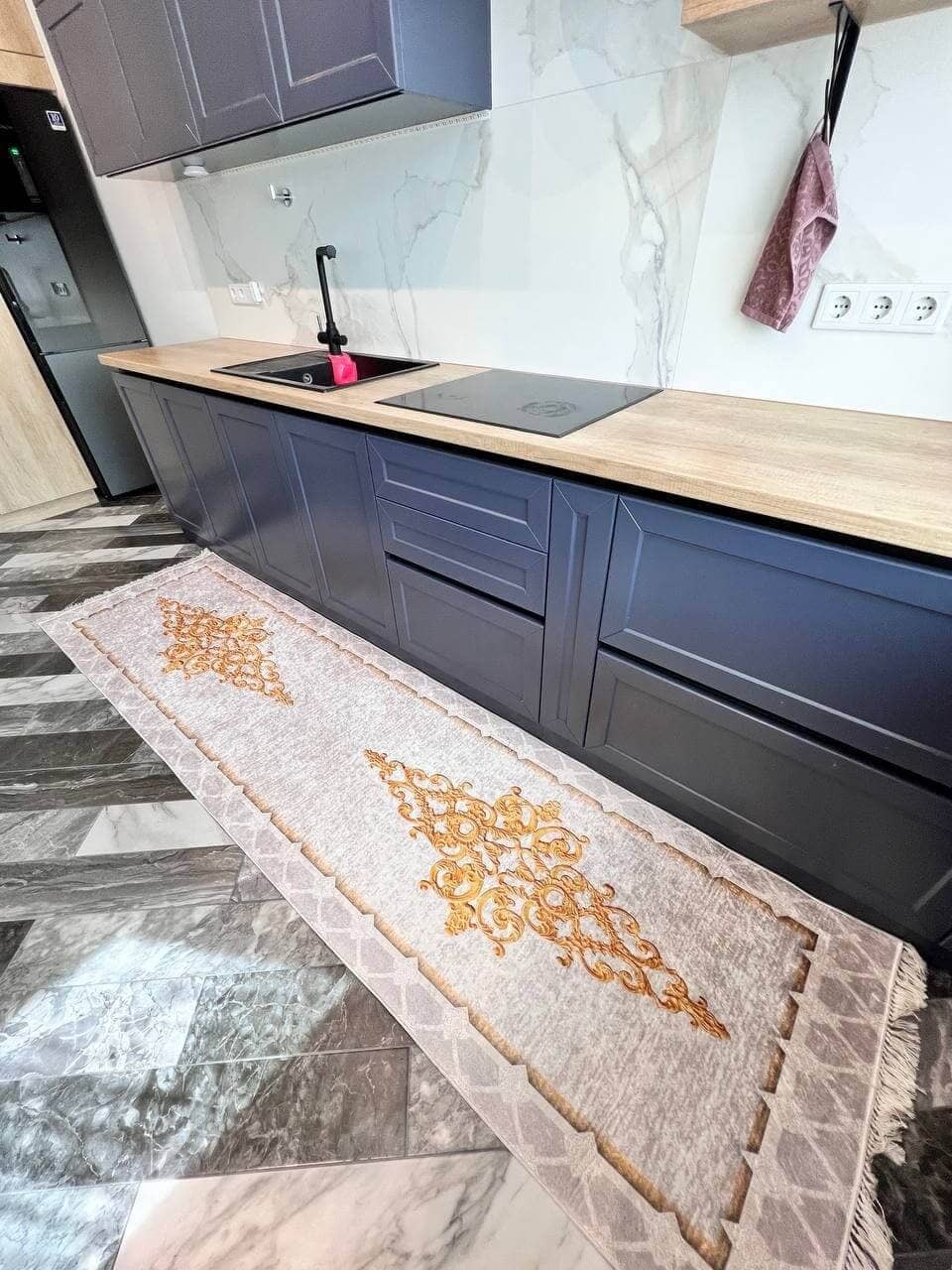 Практичний та зручний килим. Виробництво: Туречинна, не буде ковзати на підлозі завдяки прогумованій основі з іншої сторони. Чіткий візерунок, який виглядає в житті ідентично, як на фото