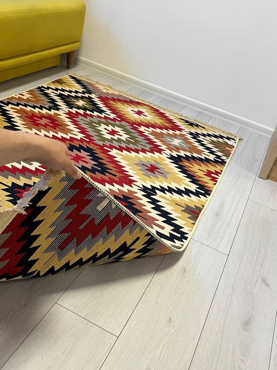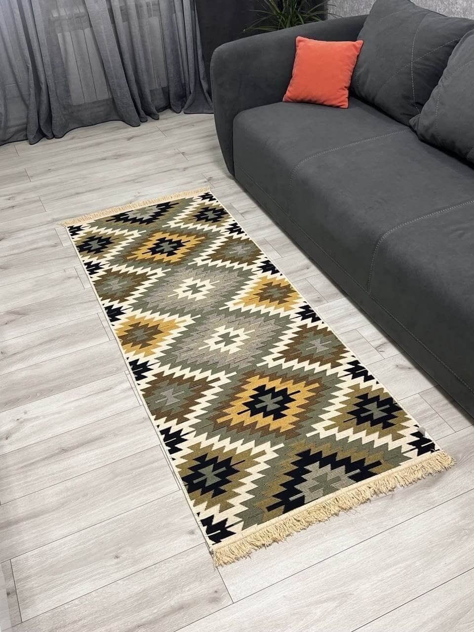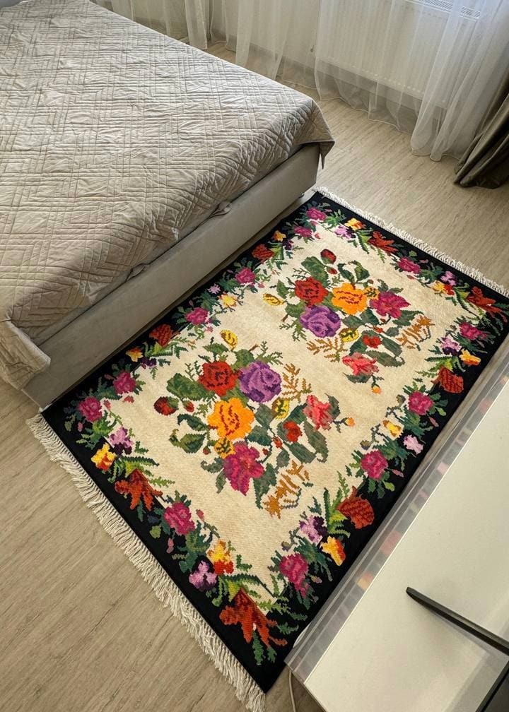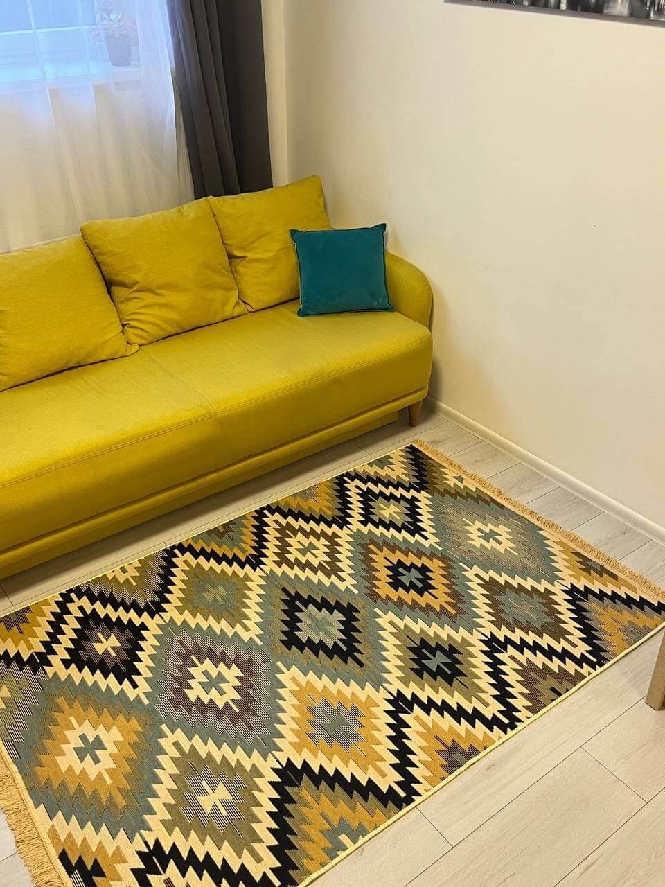 Це особливий килим - виготовлений з 100% бавовни. Має чіткий візерунок та яскравий колір, так як це виглядає на фотографії. Обираючи цей килим, Ви купуєте затишок та комфорт на довгі роки. Прогорніть фото, щоб побачити, як килим виглядає з іншої сторони