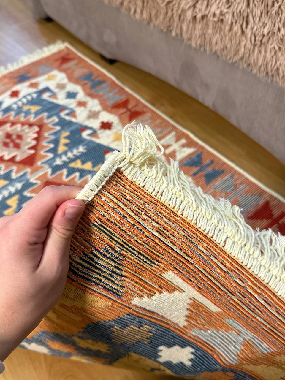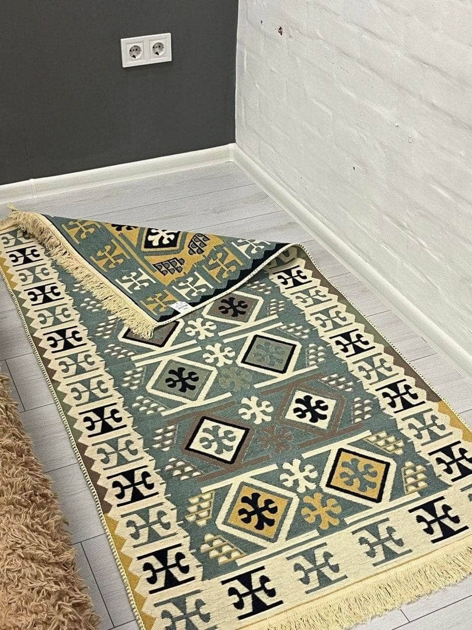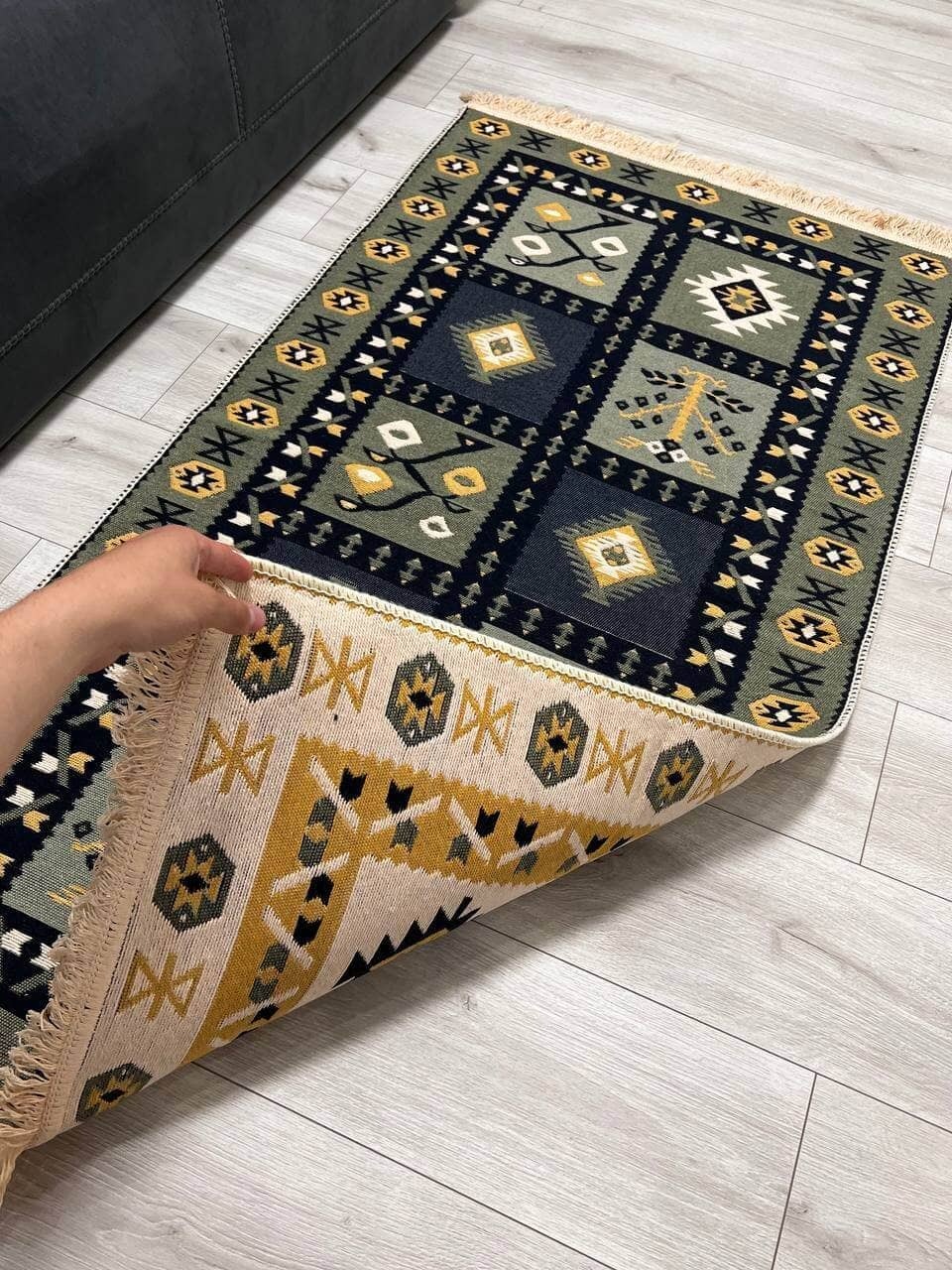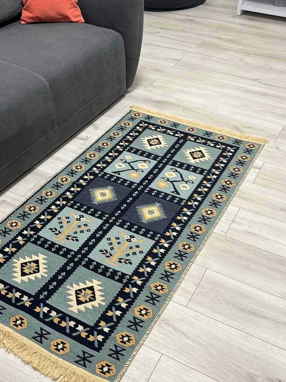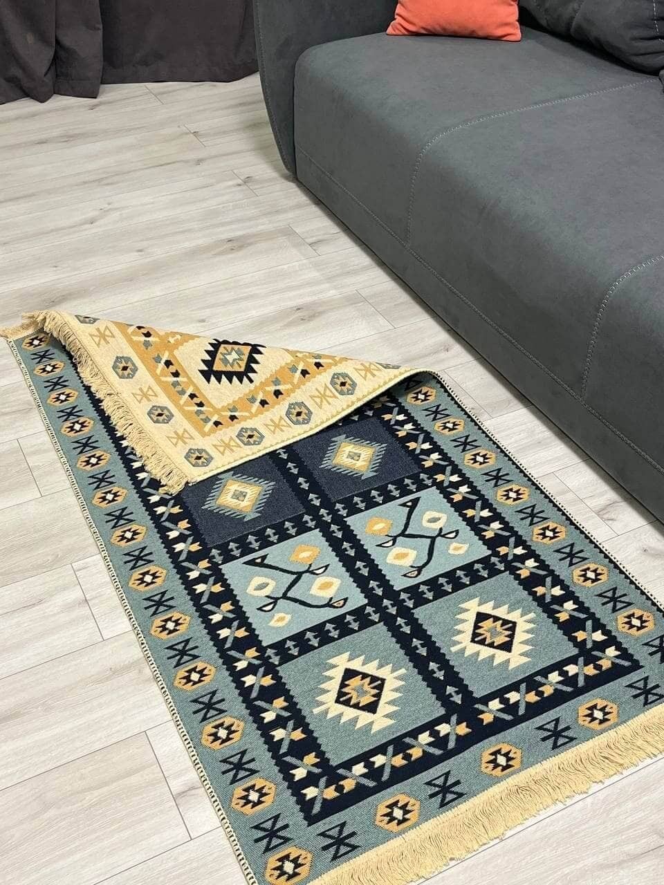 Двосторонній бавовняний килим. Кожний візерунок та колір - це окрема нитка, яке дає загальне забарвлення. Фото відповідає дійсності, можна використовувати дві сторони килима в залежності від настрою