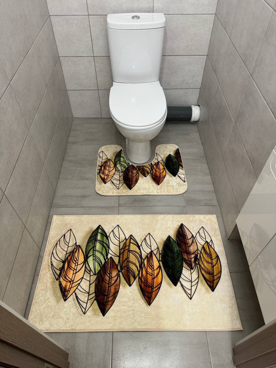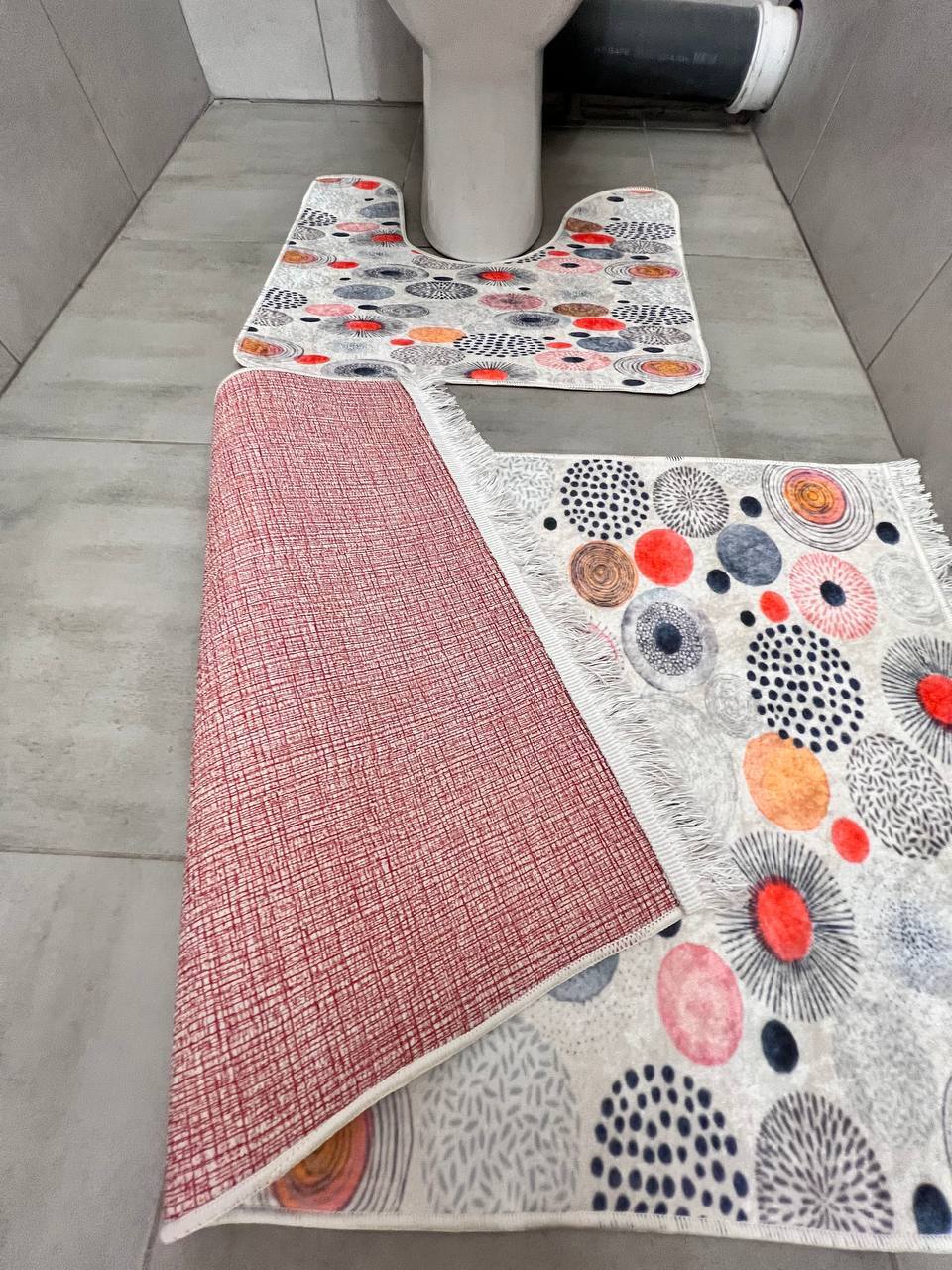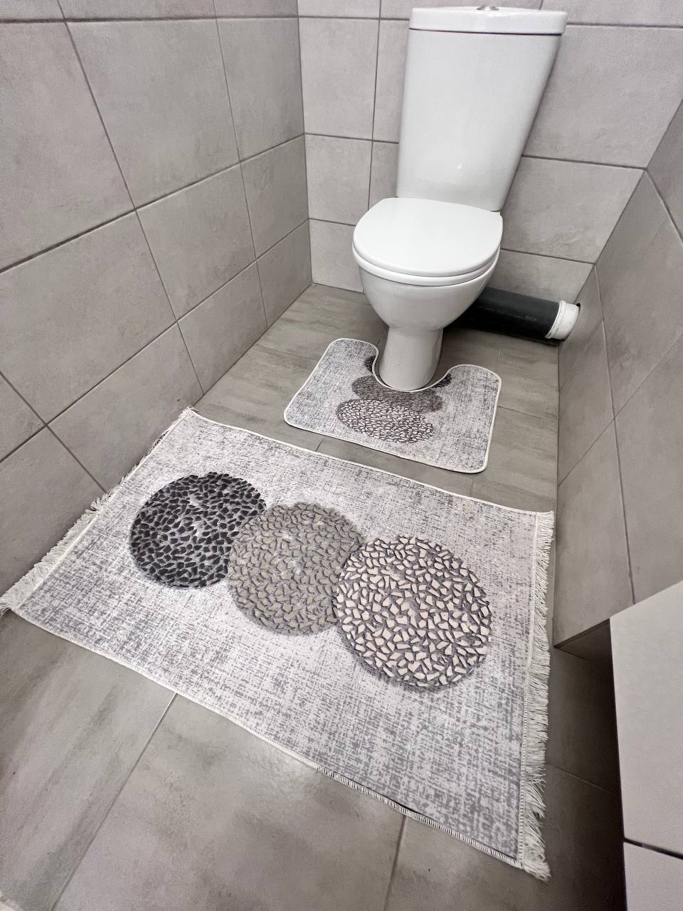 Ванний комлпект на прогумованій основі. У комплект входить 2 килима у розмірі 60х50 см з вирізом до туалету та 100х60 см для ванної. Не ковзають та не пріють