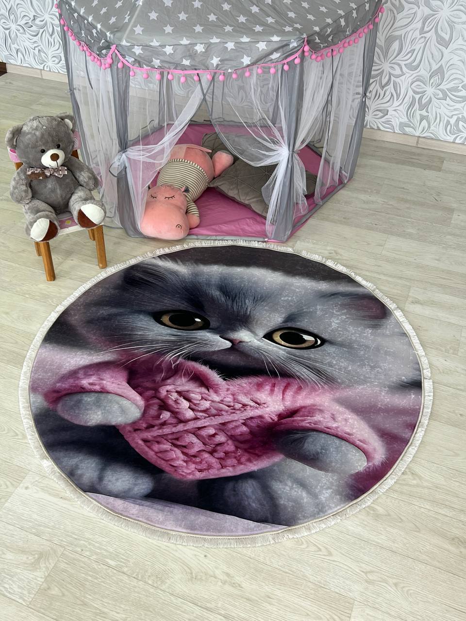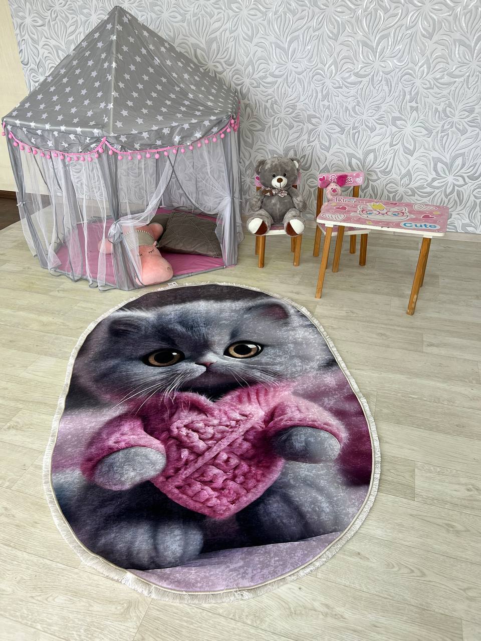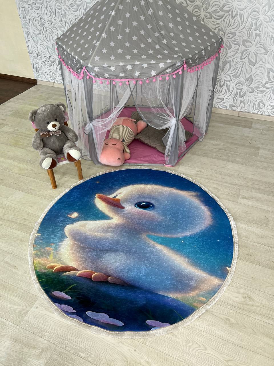 Ніжний та вишуканий дитячий килим на прогумованій основі, який не буде ковзати на підлозі, виготовлений з безпечних матеріалів, не викликає алергічних реакцій