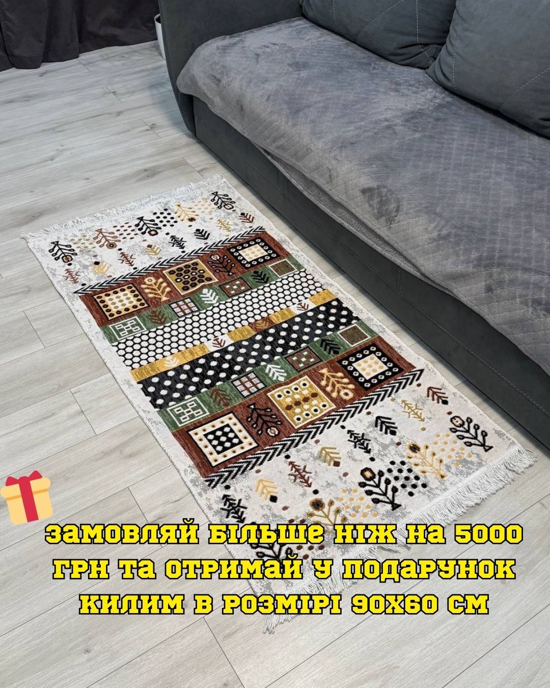 Сучасний килим. Килим є універсальним та підійде в будь яку кімнату. Прогумований екошкірою, щоб не ковзав по підлозі