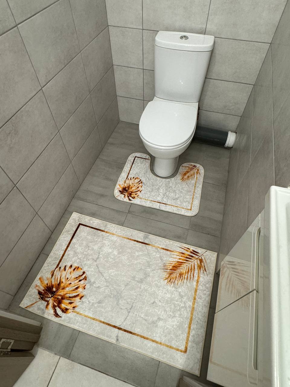 У набір входить два килимка: прямокутний і з вирізом під унітаз;