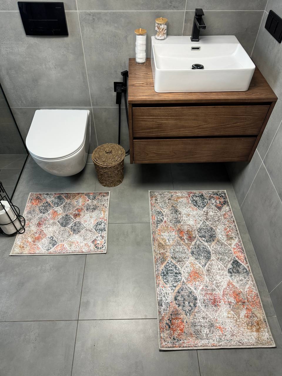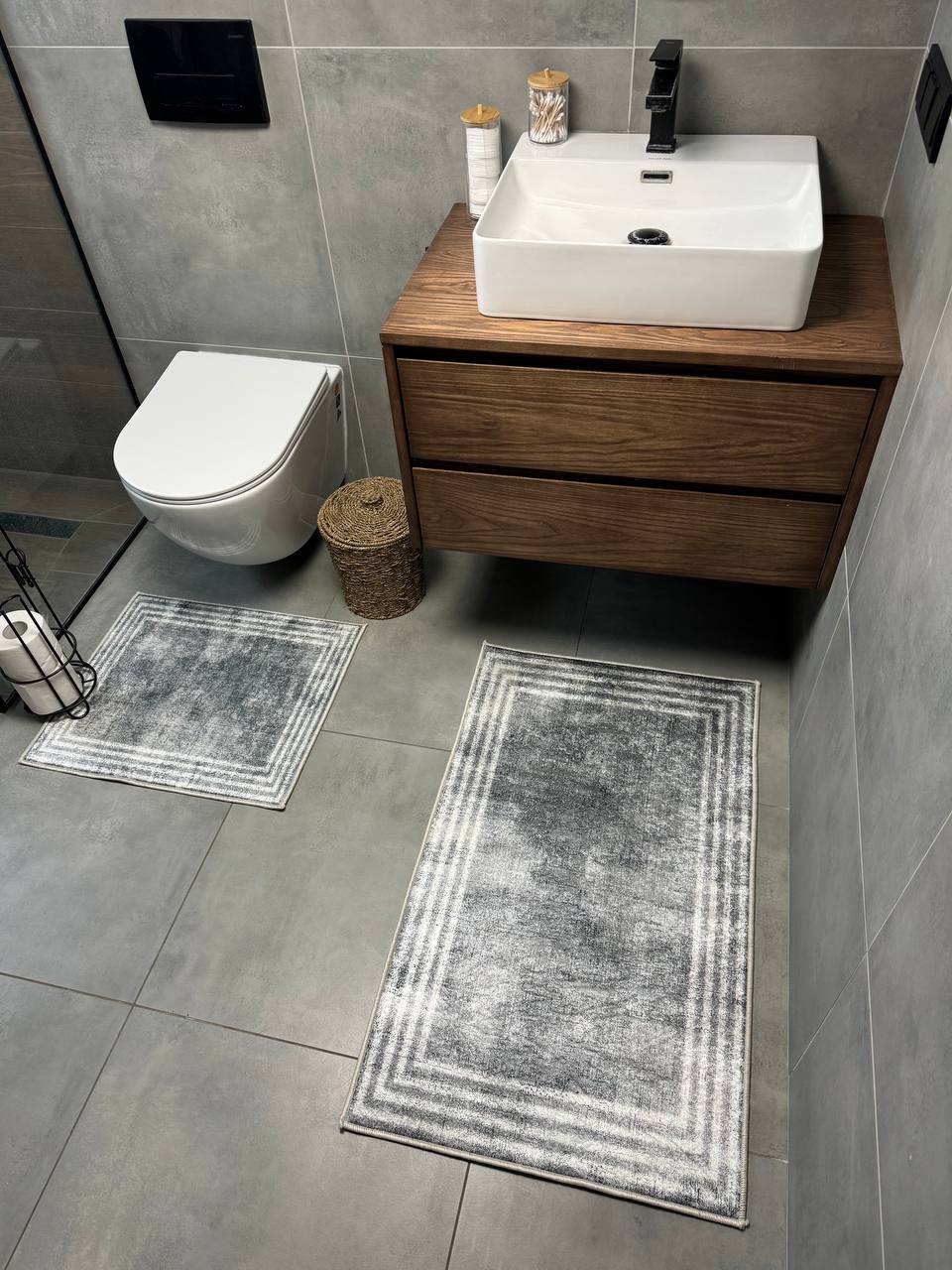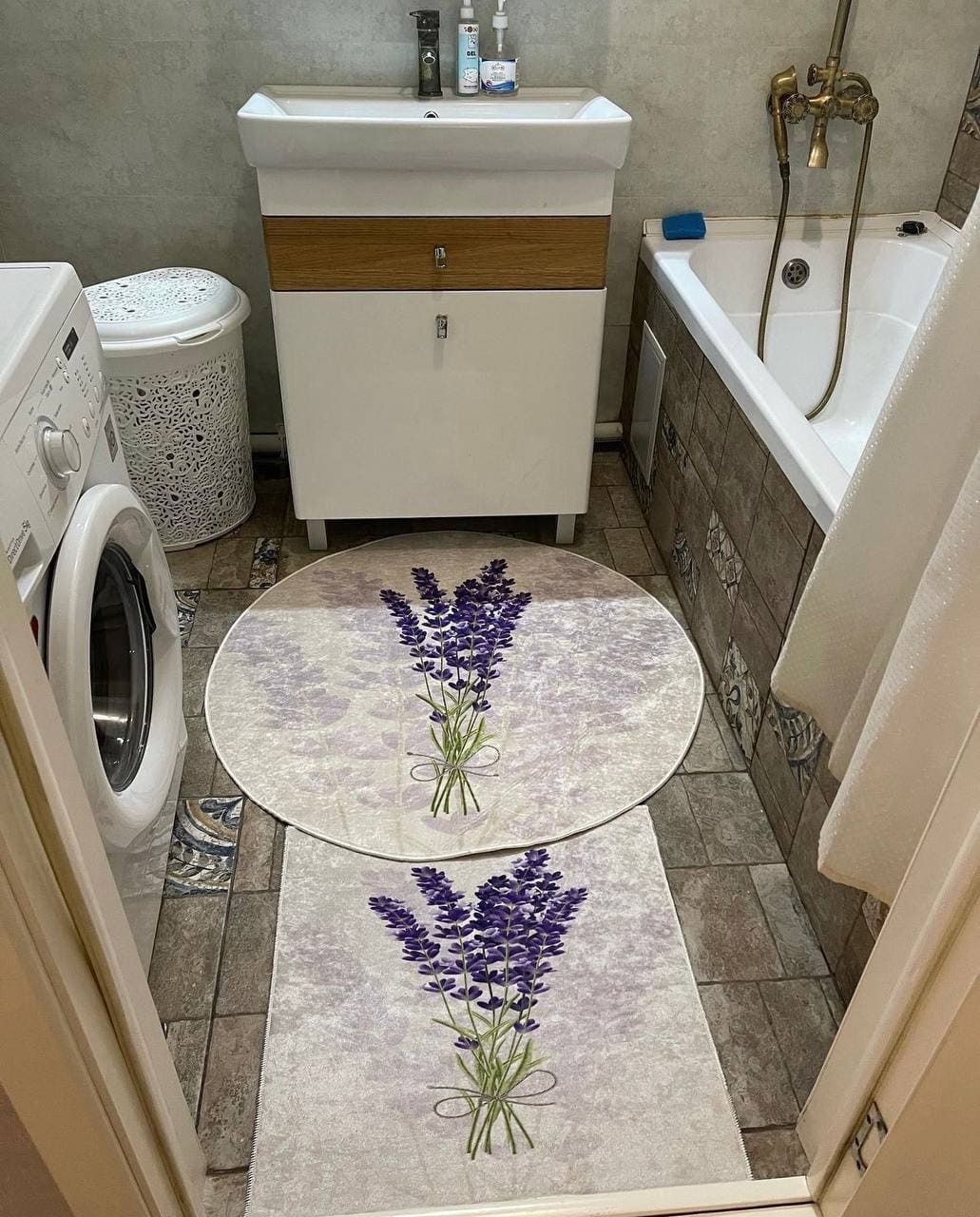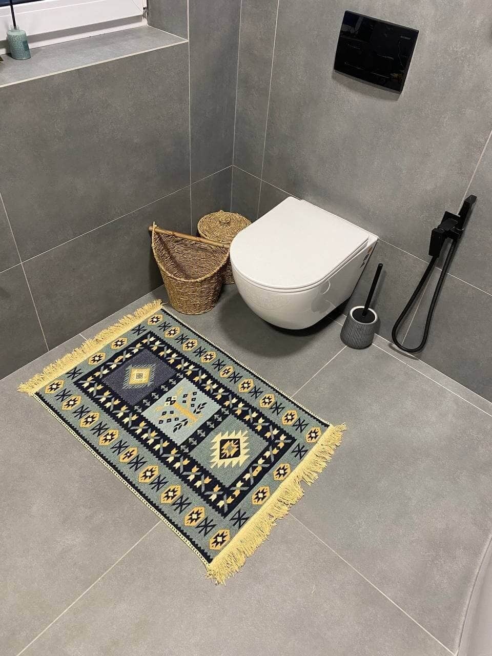 Двосторонній бавовняний килим для ванної кімнати в маленьких розмірах. Ідеальне рішення для такої кімнати, килим стійкий до вологи, не пропускає холод через підлогу та легко можна прати в машинці