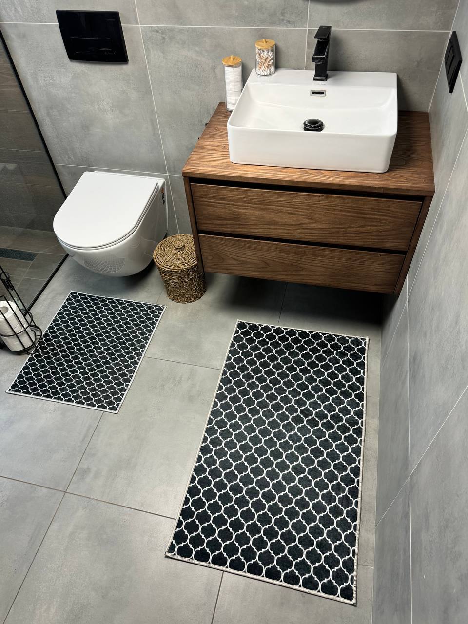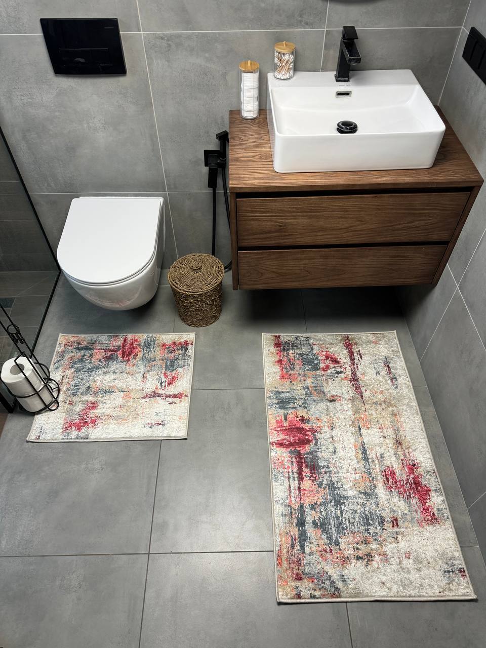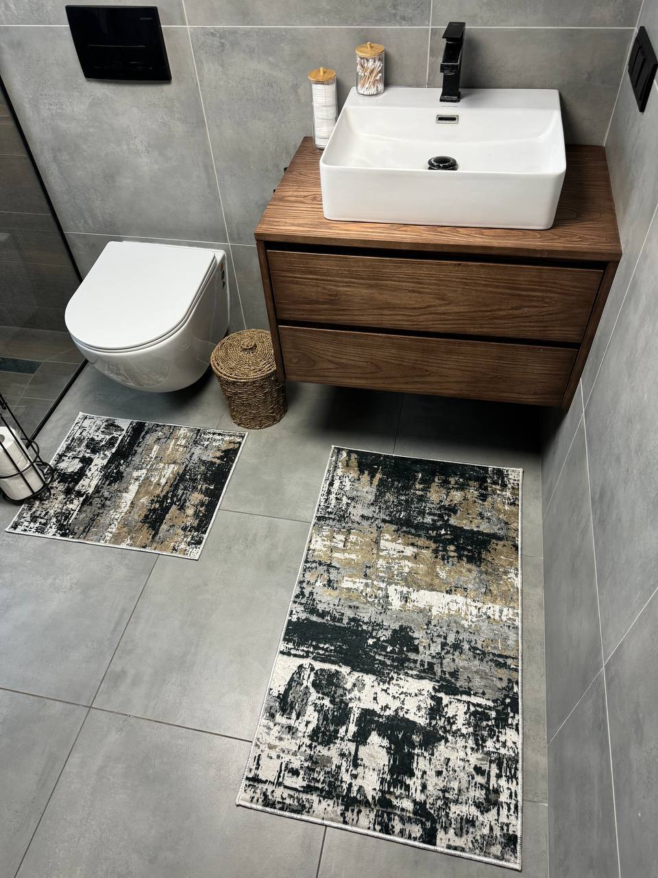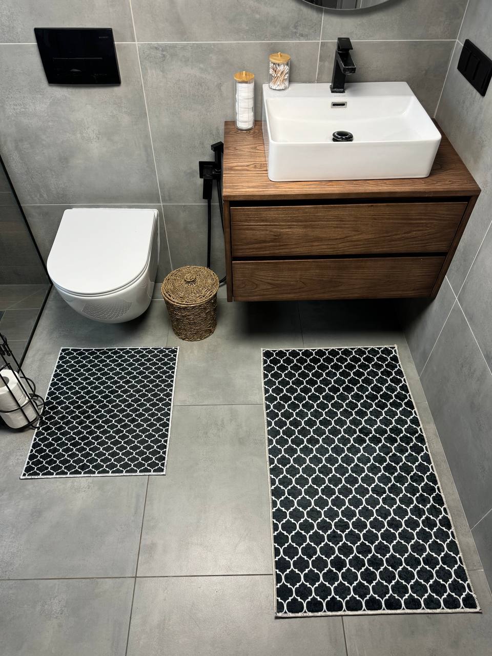 Двосторонній бавовняний килим для ванної кімнати в маленьких розмірах. Ідеальне рішення для такої кімнати, килим стійкий до вологи, не пропускає холод через підлогу та легко можна прати в машинці