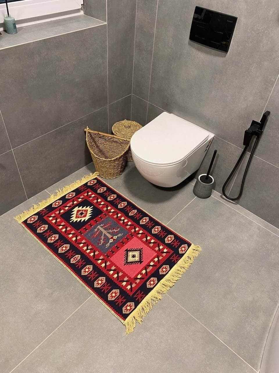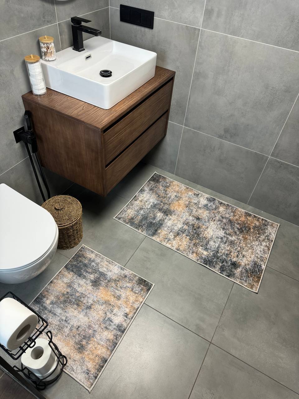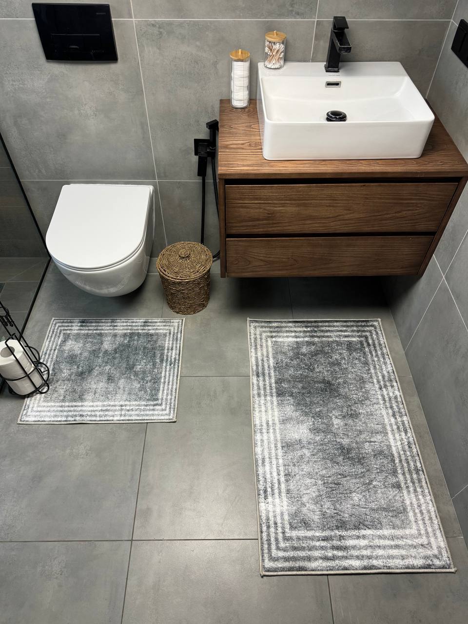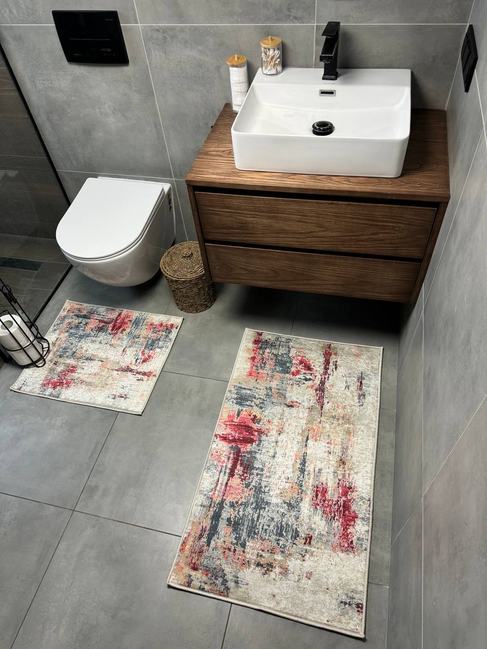 Двосторонній бавовняний килим для ванної кімнати в маленьких розмірах. Ідеальне рішення для такої кімнати, килим стійкий до вологи, не пропускає холод через підлогу та легко можна прати в машинці