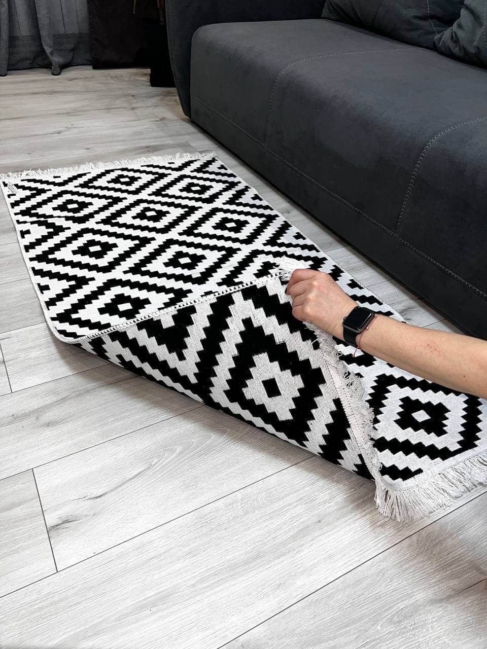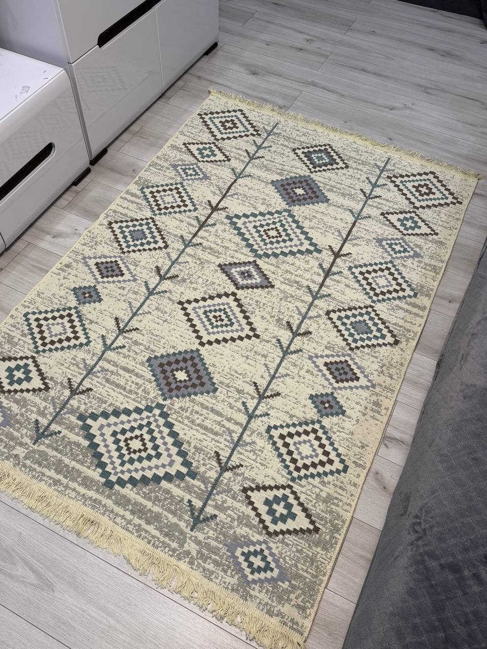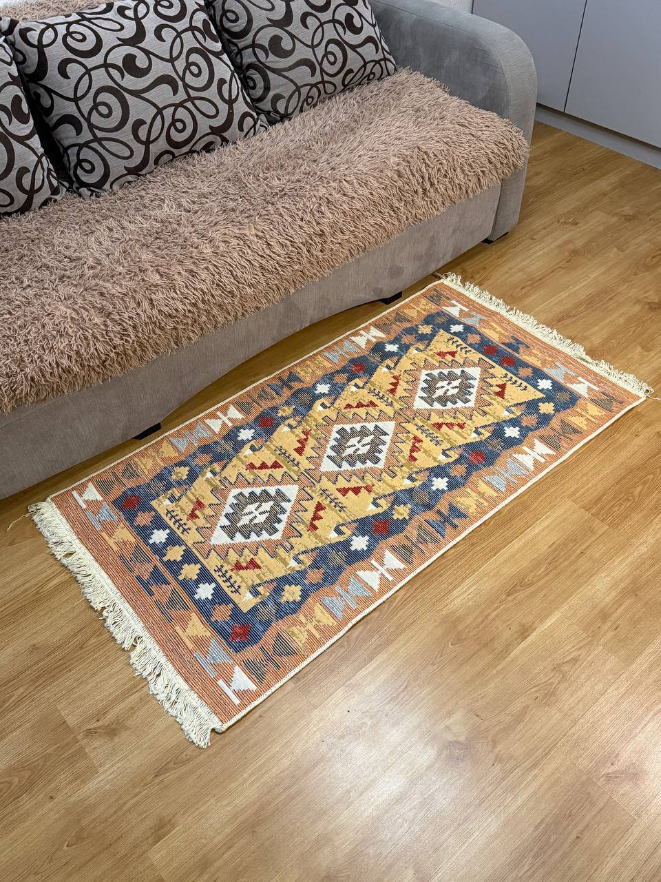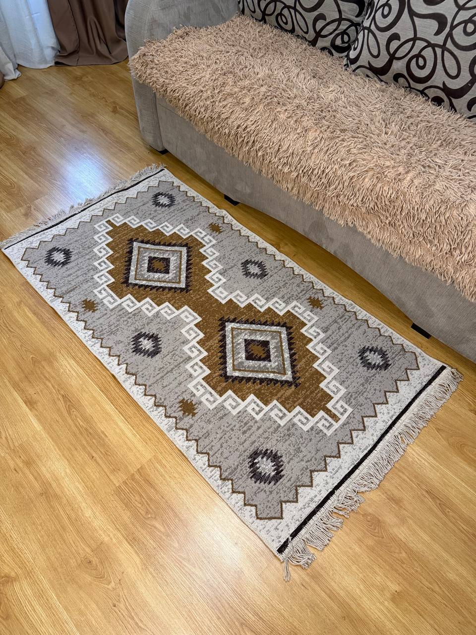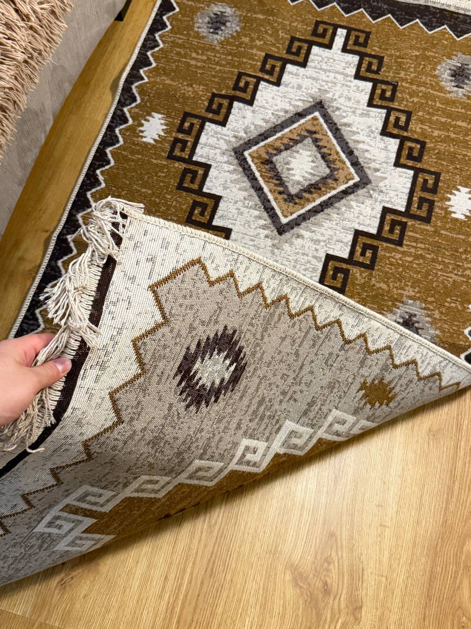 Практичний та зручний килим. Виробництво: Туречинна, не буде ковзати на підлозі завдяки прогумованій основі з іншої сторони. Чіткий візерунок, який виглядає в житті ідентично, як на фото