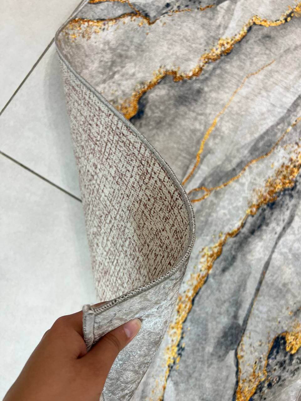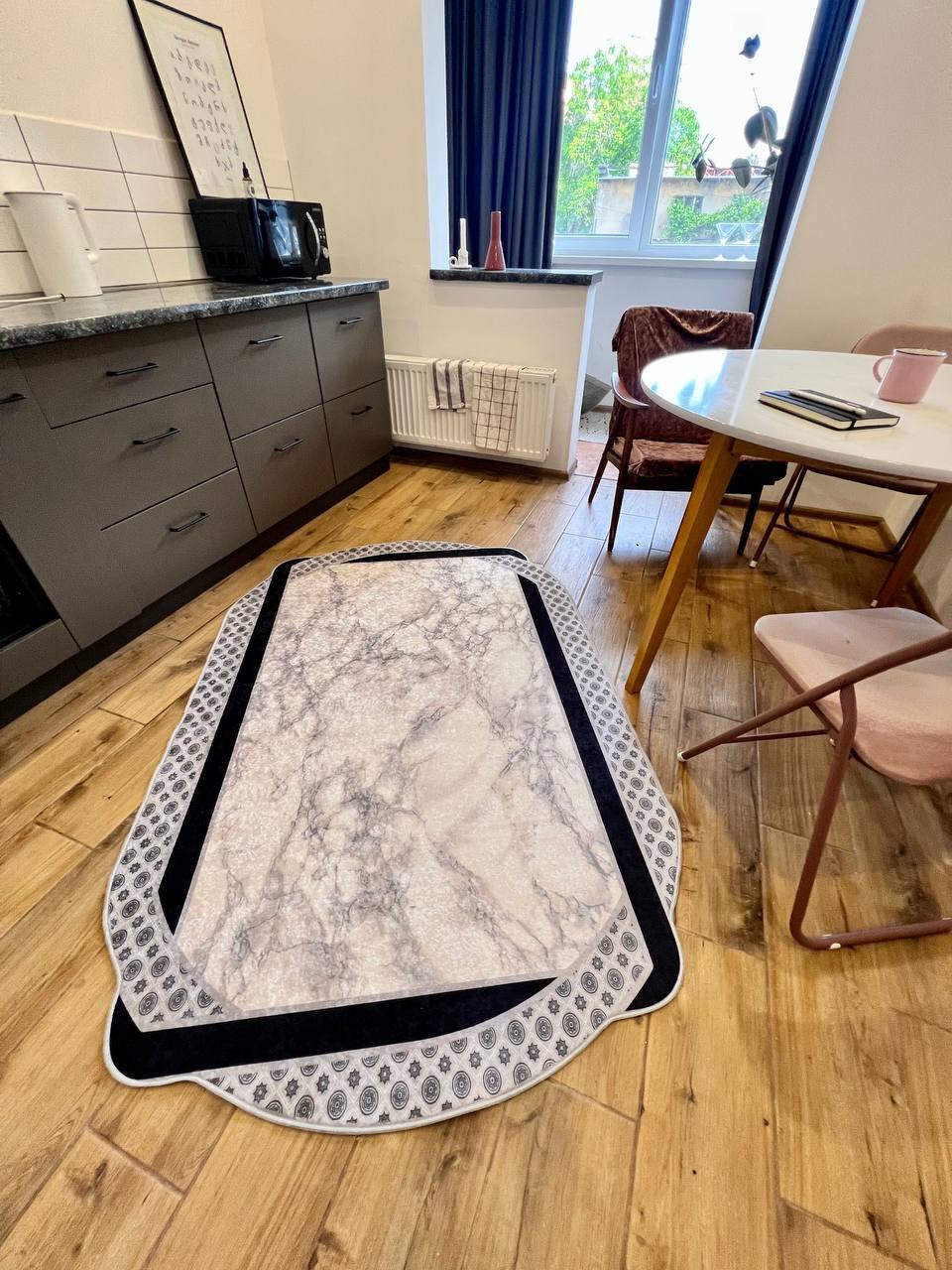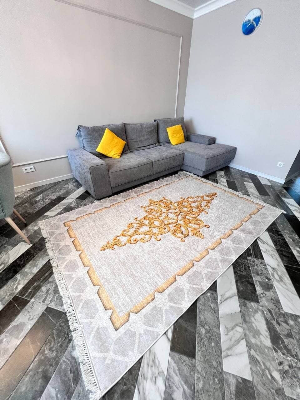 Сучасний килим, виготовлений в Туречинні, стиль мрамор. Не ковзає на підлозі, завдяки прогумованій основі з екошкіри