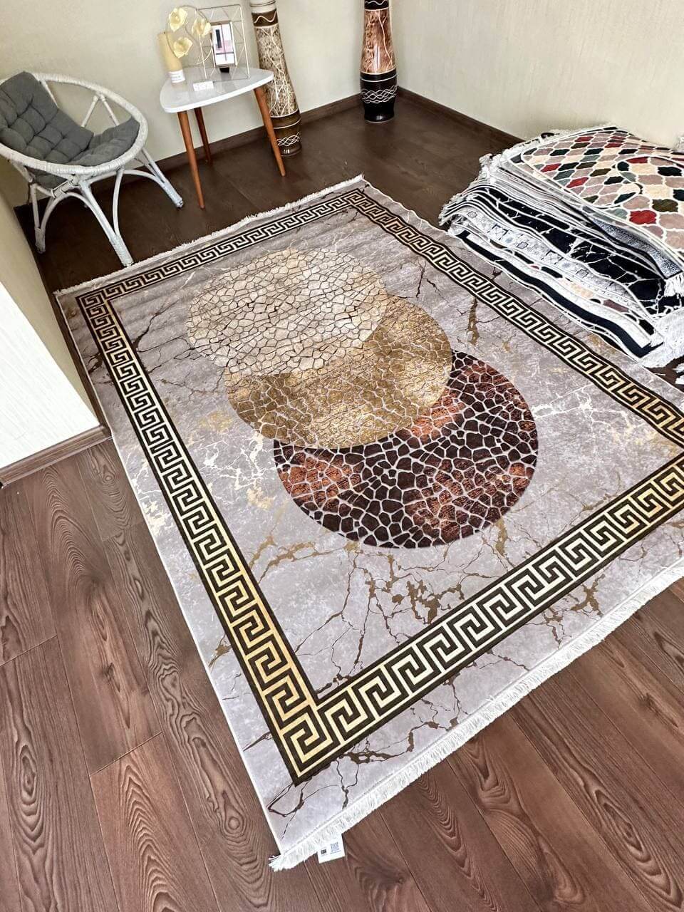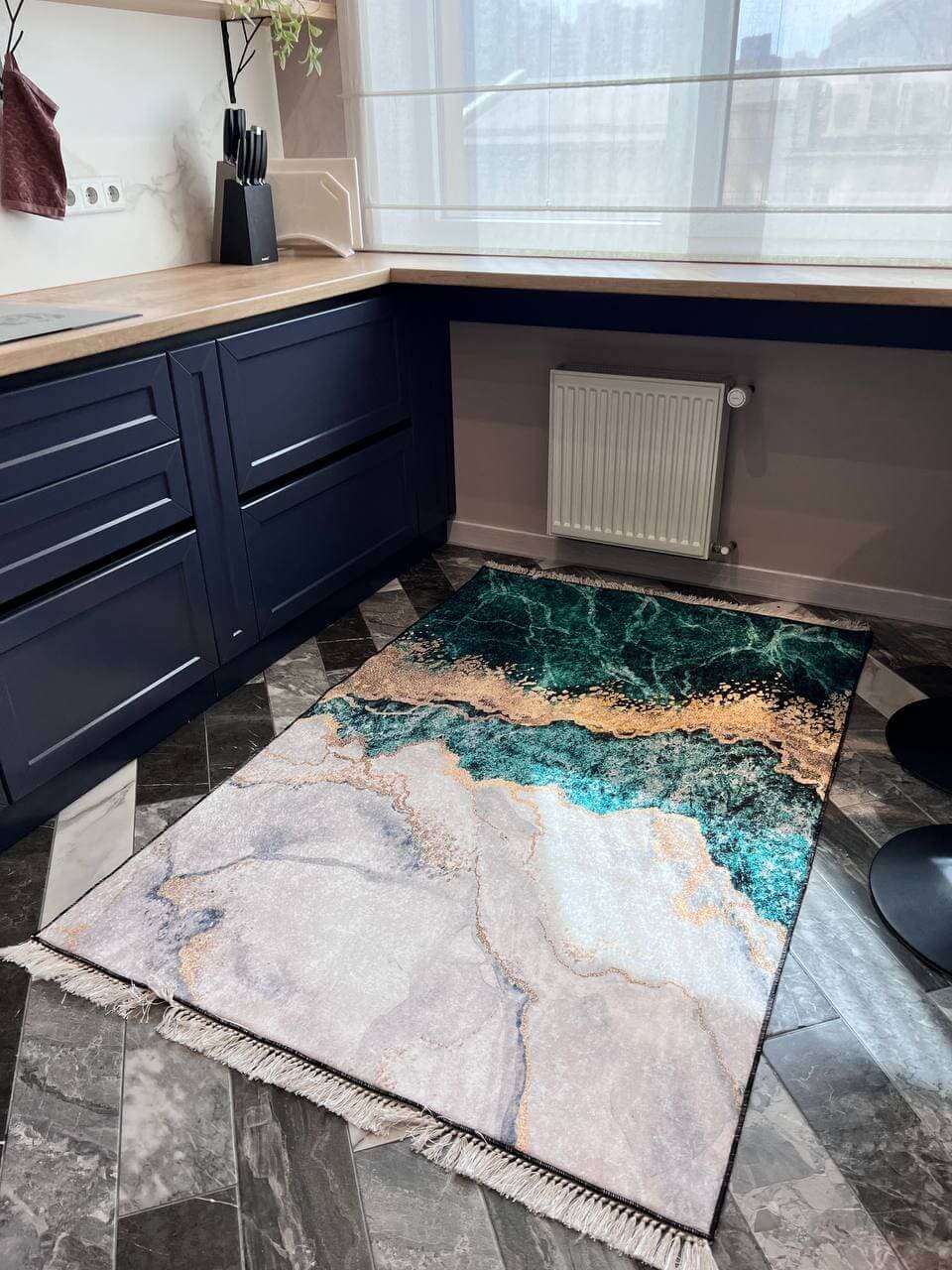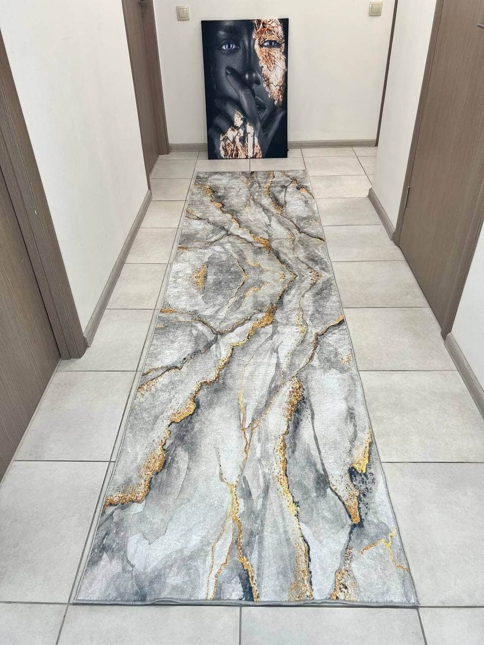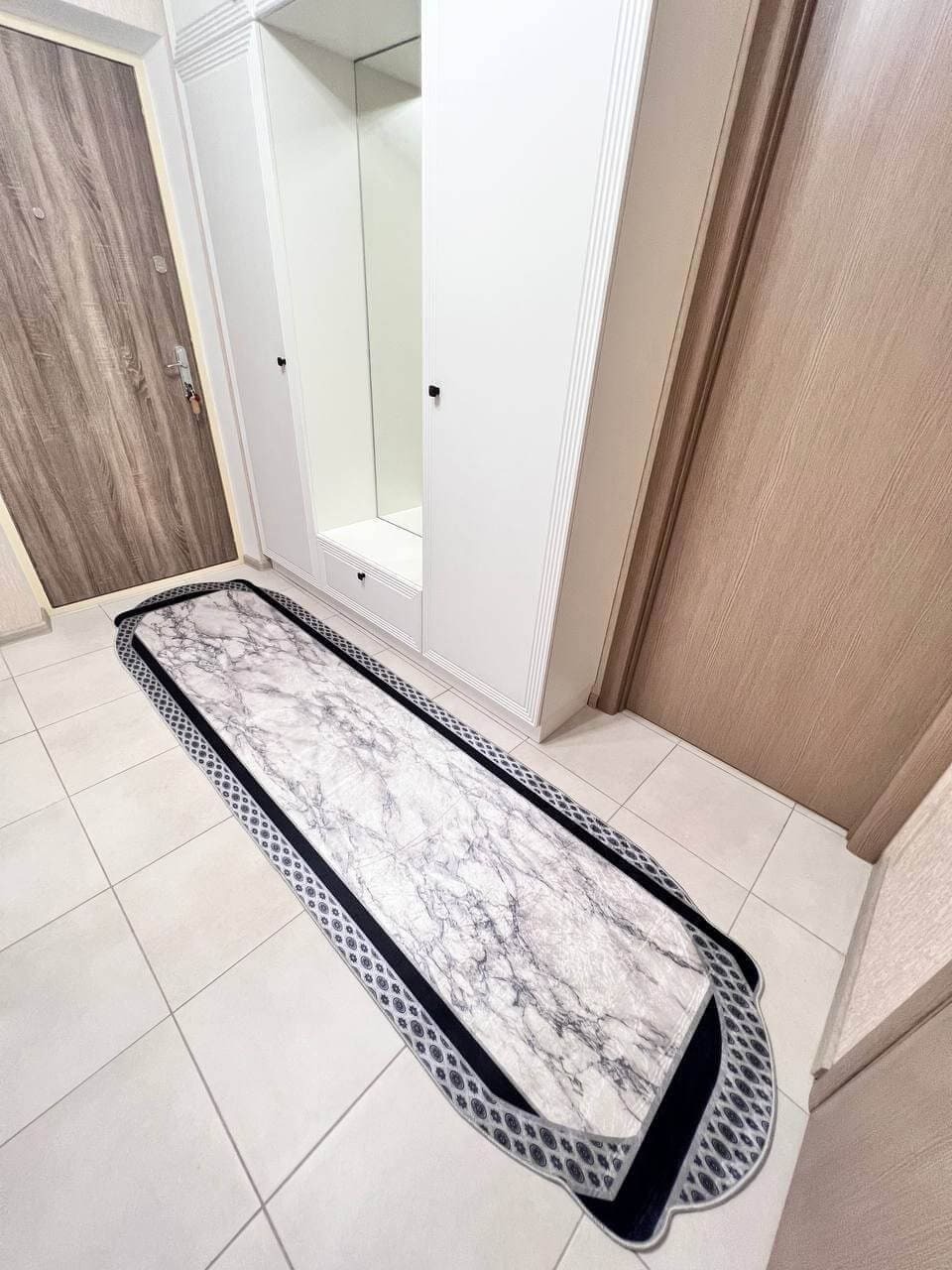 Сучасний килим, виготовлений в Туречинні, стиль мрамор. Не ковзає на підлозі, завдяки прогумованій основі з екошкіри