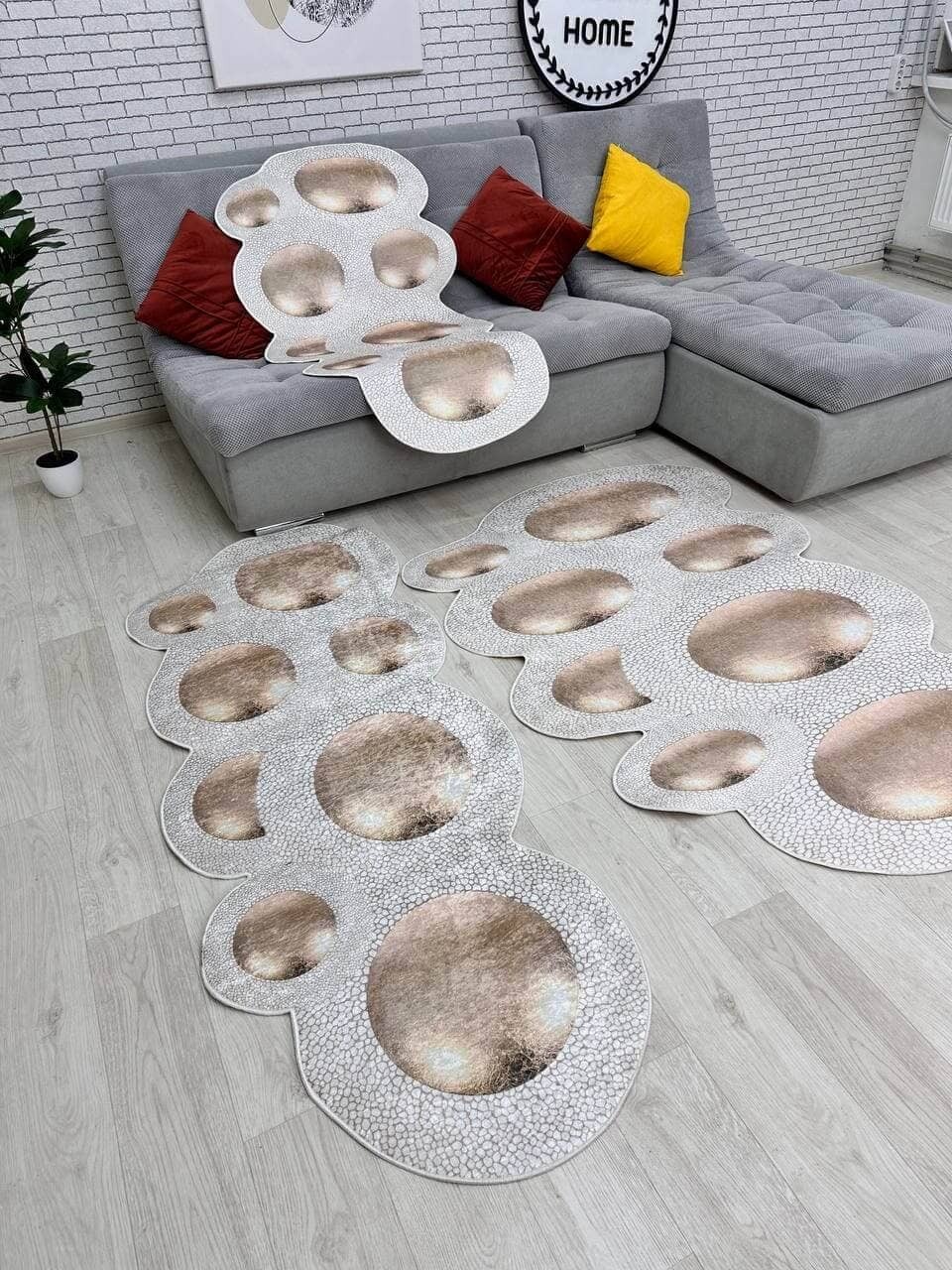 Дуже стильні, сучасні, безворсові килими підійдуть для будь якого дизайну. Килими не ковзають на підлозі завдяки прогумованій екошкірі, не пропускають холод та є гіпоалергенними