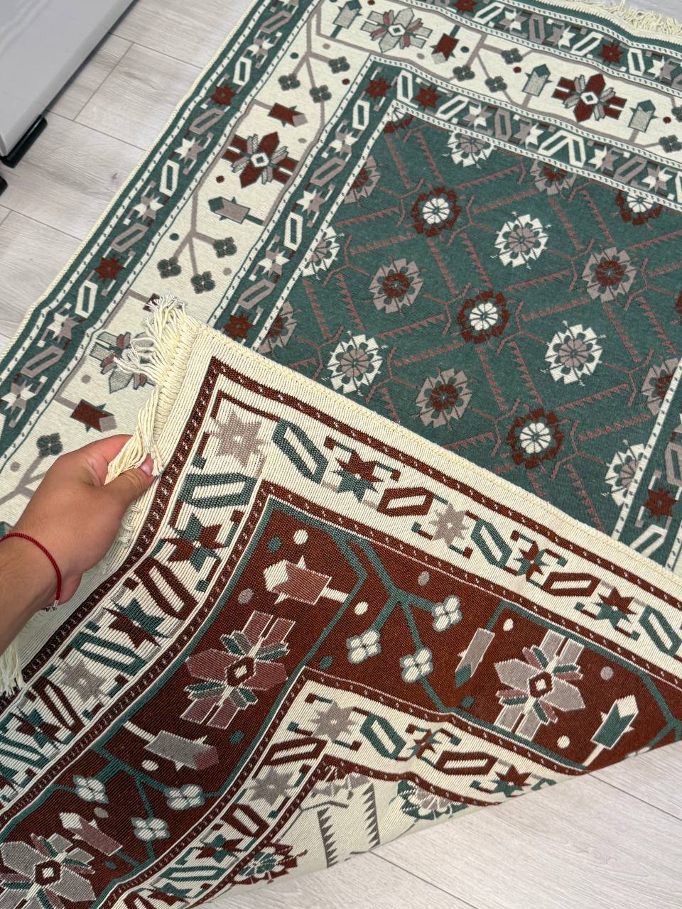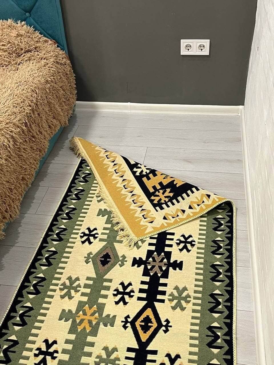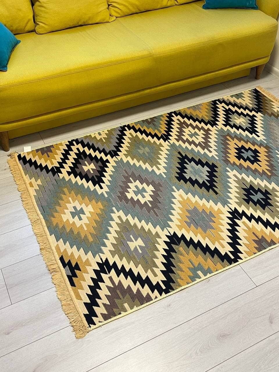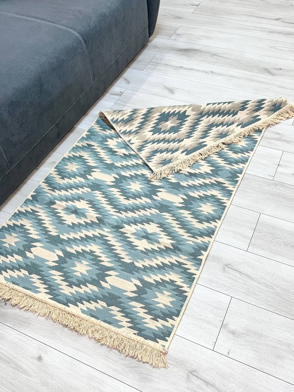 Двосторонній бавовняний килим. Кожний візерунок та колір - це окрема нитка, яке дає загальне забарвлення. Фото відповідає дійсності, можна використовувати дві сторони килима в залежності від настрою