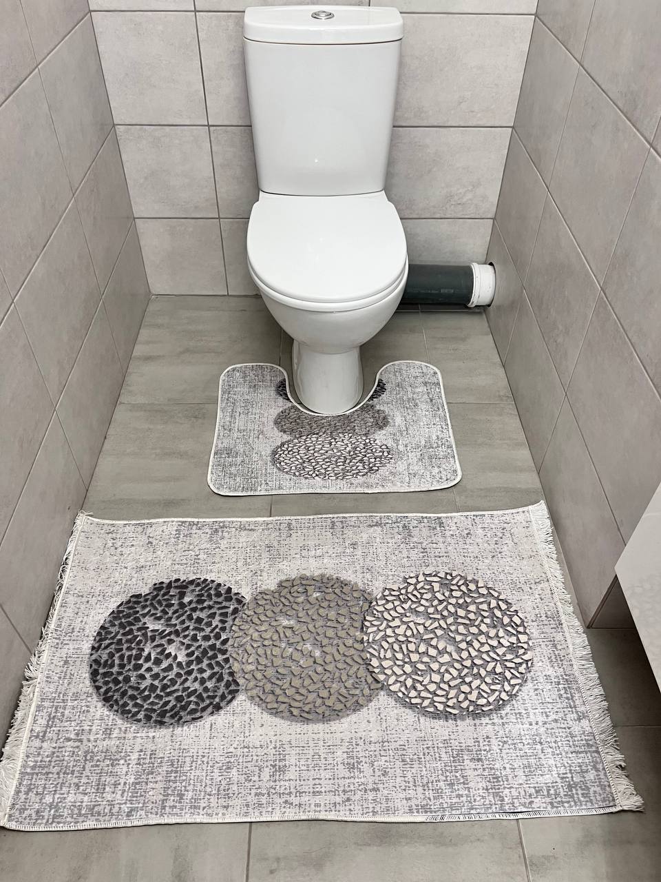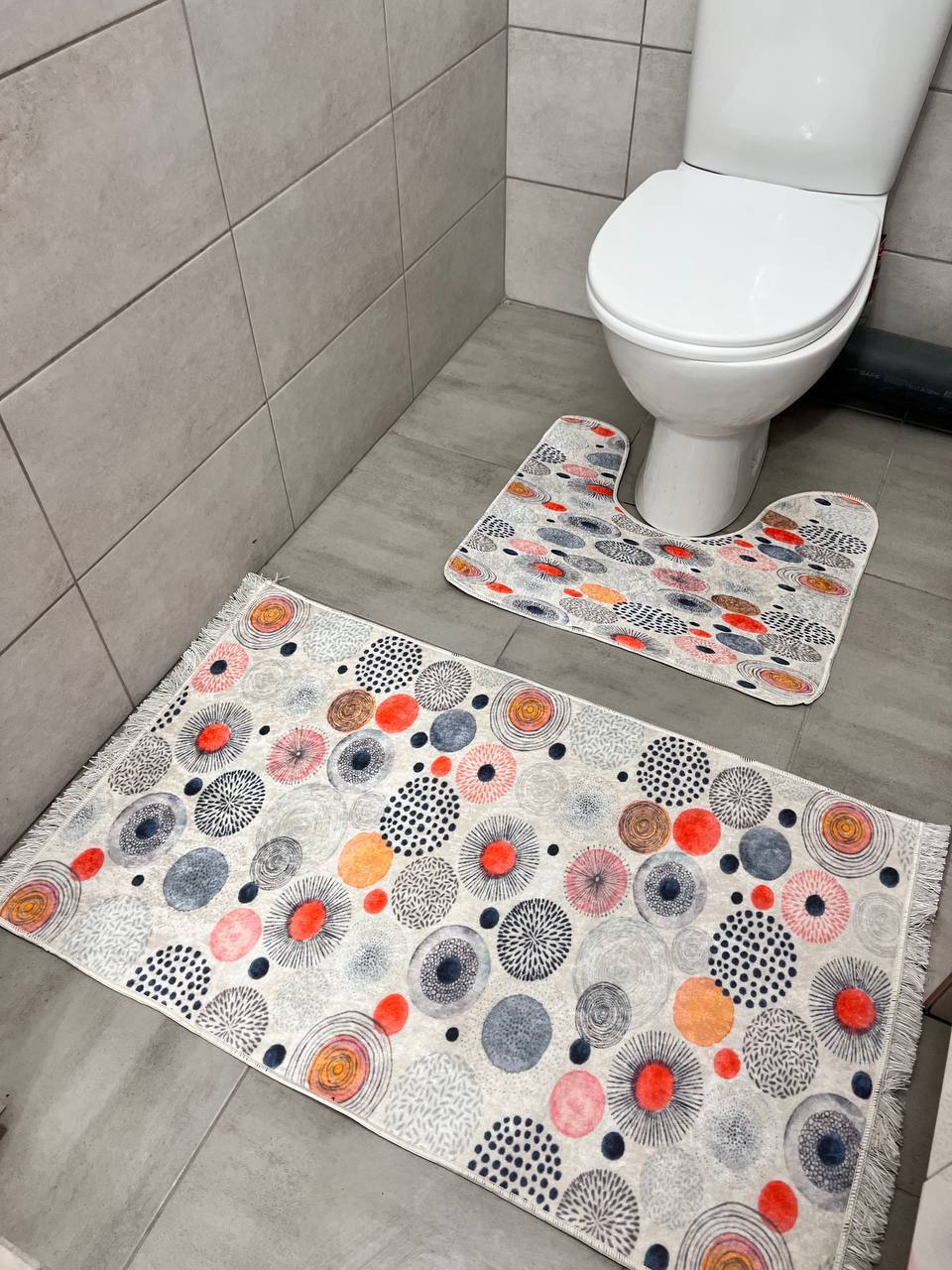 Ванний комлпект на прогумованій основі. У комплект входить 2 килима у розмірі 60х50 см з вирізом до туалету та 100х60 см для ванної. Не ковзають та не пріють