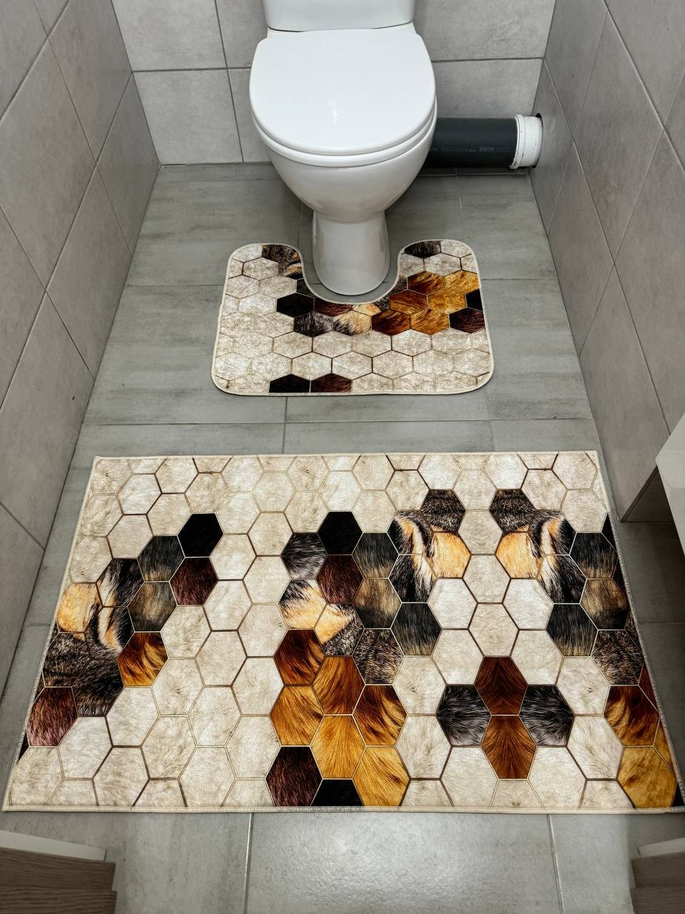 У набір входить два килимка: прямокутний і з вирізом під унітаз;