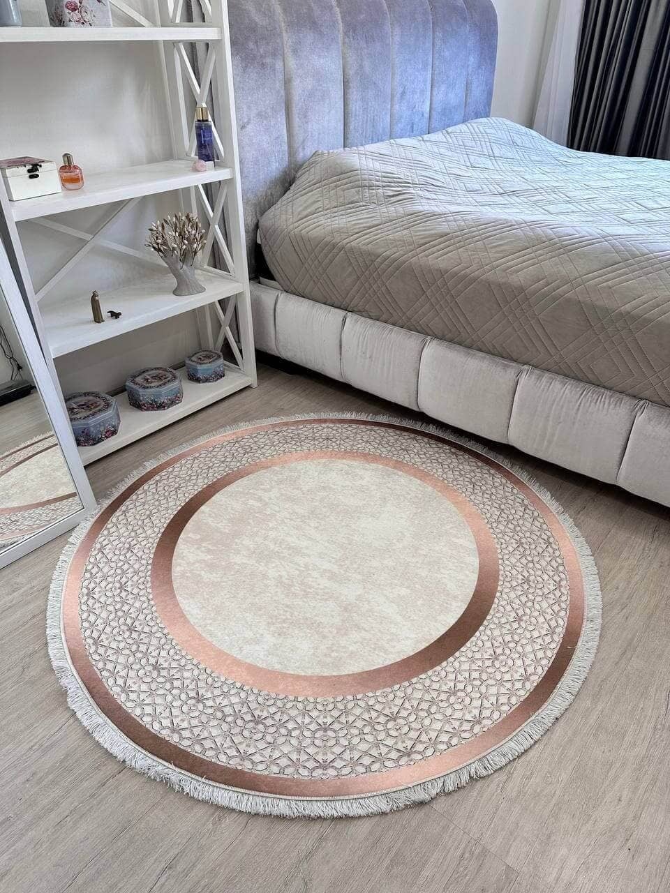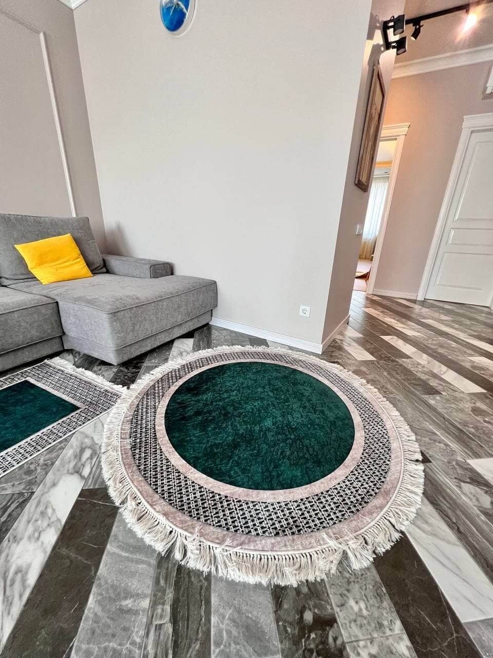 Килим, який не ковзає на підлозі, має особливий смарагдовий колір, доступний до замовлення у формі кола та прямокутника